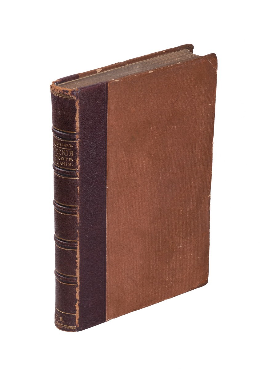 В полукожаном переплете эпохи. 1-2 с. изд. обл. сохранена в переплете. Влад. инициалы «К. И.» вытиснены на корешке. Наклейка переплетной мастерской «Насл. А. Григорьева в Нарве» на форзаце.