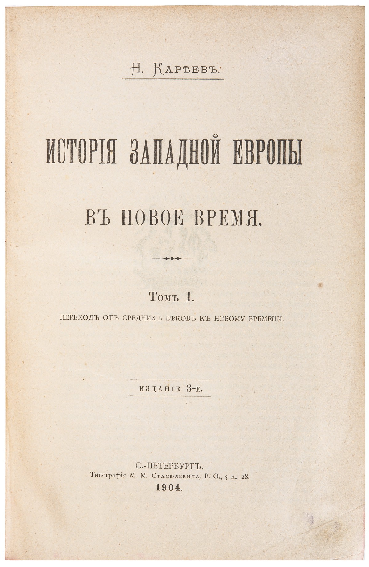 Т.1: Переход от средних веков к новому времени. - 3-е изд. - 1904. - VI, 416 с.; Т.2: История XVI и XVII веков. - 3-е изд. - 1904. - [2], 624 с.; Т.3: История XVIII века. - 3-е изд. - 1904. - [2], 646 с.; Т.4: Первая треть XIX века : Консульство, империя и реставрация. - 2-е изд. - 1901. - X, 645 с.; Т.5: Средние десятилетия XIX века (1830-1870 гг.). - 2-е изд. - 1903. - [4], VI, 888 с.