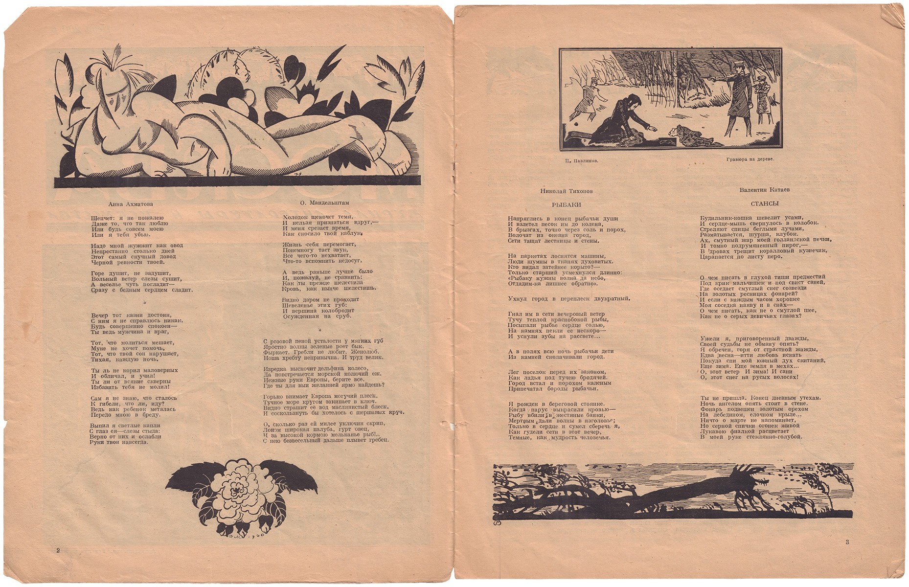 В оформлении номера принимали участие Чехонин Сергей Васильевич (заставка на обл.), Митрохин Дмитрий Исидорович, Нивинский Игнатий Игнатьевич, Митурич Петр Васильевич, Нарбут Георгий Иванович и др. В номер вошли следующие публикации: Анна Ахматова «Шепчет: я не пожалею...», «Вечер тот казни достоин...», Осип Мандельштам «Холодок щекочет темя...», «В розовой пеной усталости...», Михаил Кузьмин «Легче пламени, молока нежней...», Владислав Ходасевич «Два стихотворения» и т.д.