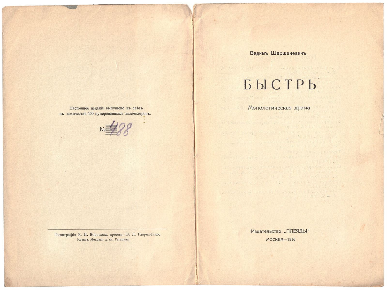 В шрифтовой издательской обложке. № 488 из 500 нум. экз.