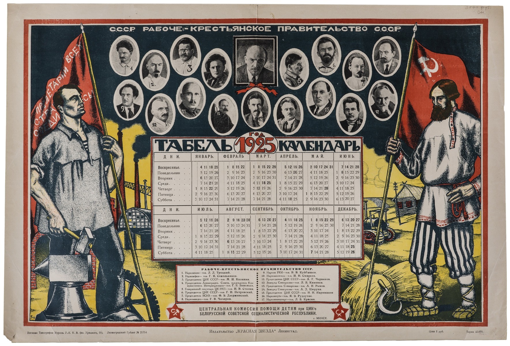Хромолитография. Среди членов правительства, впоследствии осужденных и посмертно реабилитированных присутствуют: Л. Д. Троцкий, Л. Б. Каменев, А. И. Рыков, Г.Е. Зиновьев, Н.И. Бухарин, Г.Я. Сокольников, И.Н. Смирнов, Я.Э. Рудзутак.