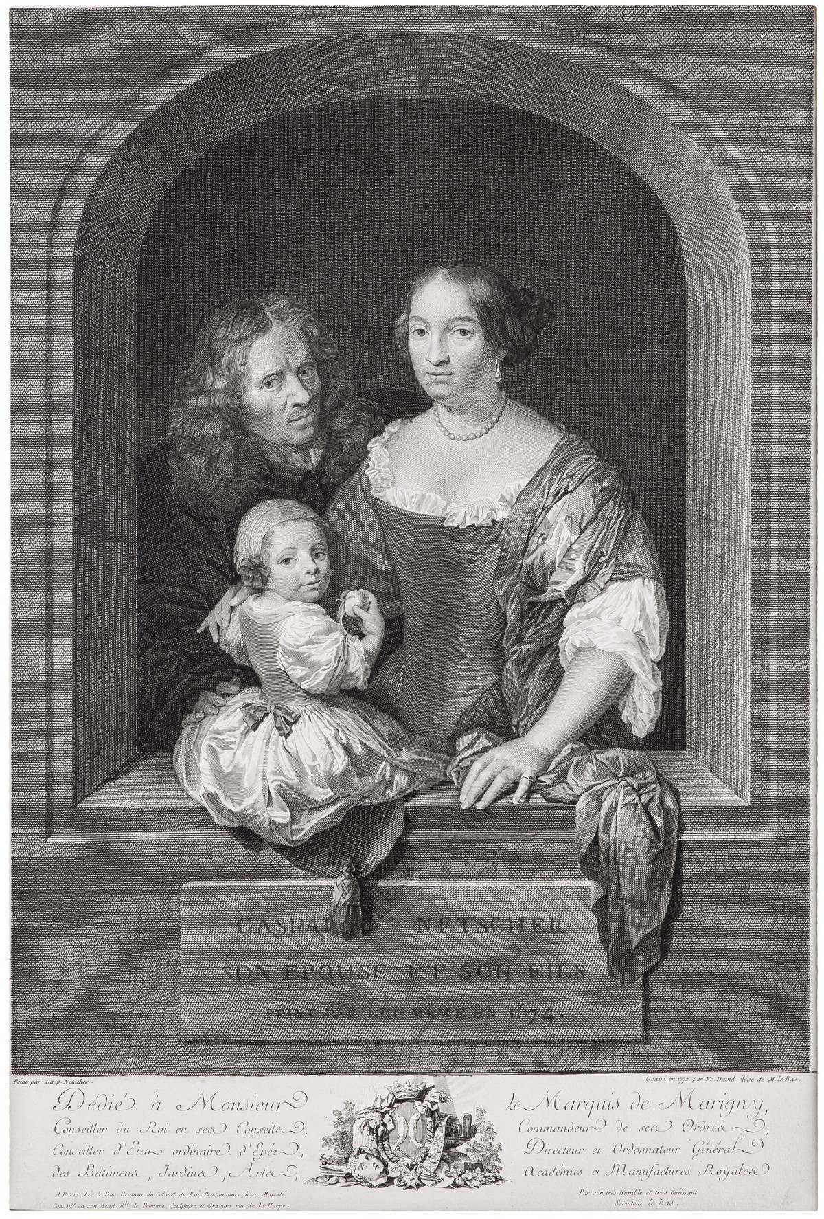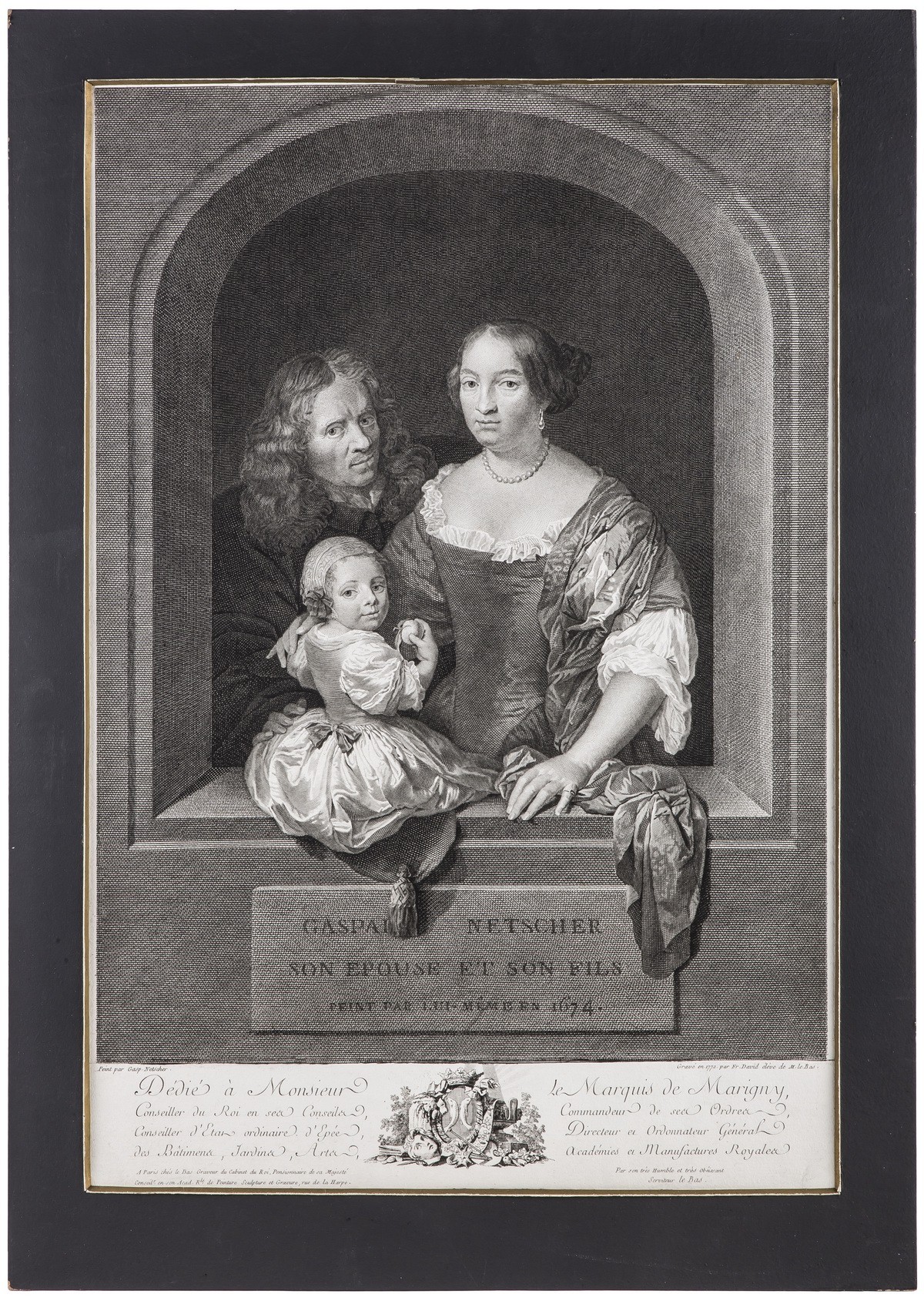 Давид, Ф.А. Гравюра «Художник Каспар Нетчер и его семья». - Франция, Париж, 1772. - 53х35 см.