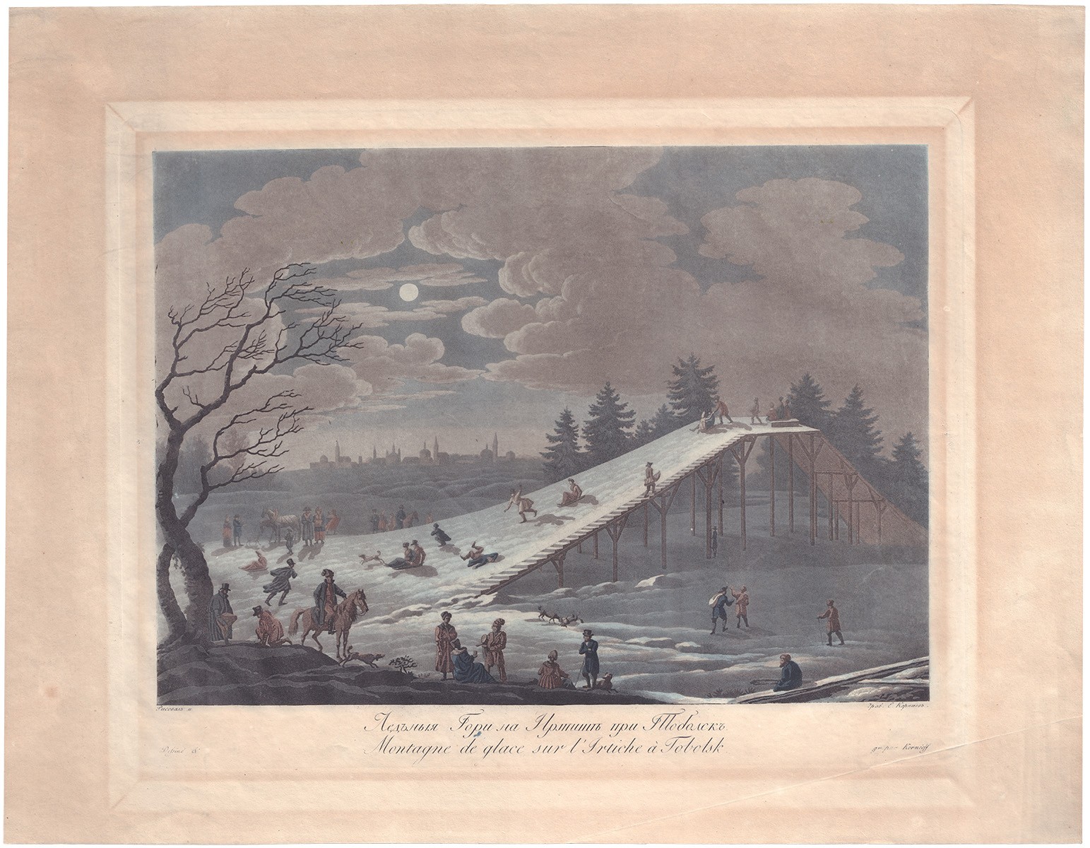 Емельян Михайлович Корнеев (1782-1839) — гравер, рисовальщик и путешественник. Учился в классе исторической живописи Петербургской Императорской академии художеств под руководством Г.И. Угрюмова. В начале XIX века был прикомандирован к генералу Спренгпортену, который по повелению императора Александра I совершил путешествие по России в 1802-1805 годах. За это время Корнеев создал большое количество рисунков, которые привлекли внимание баварского посланника при русском дворе, графа Карла Рехберга. Рехберг предложил Корнееву издать альбомы гравюр по его рисункам. Двухтомный труд создавался Корнеевым и Рехбергом в Мюнхене.