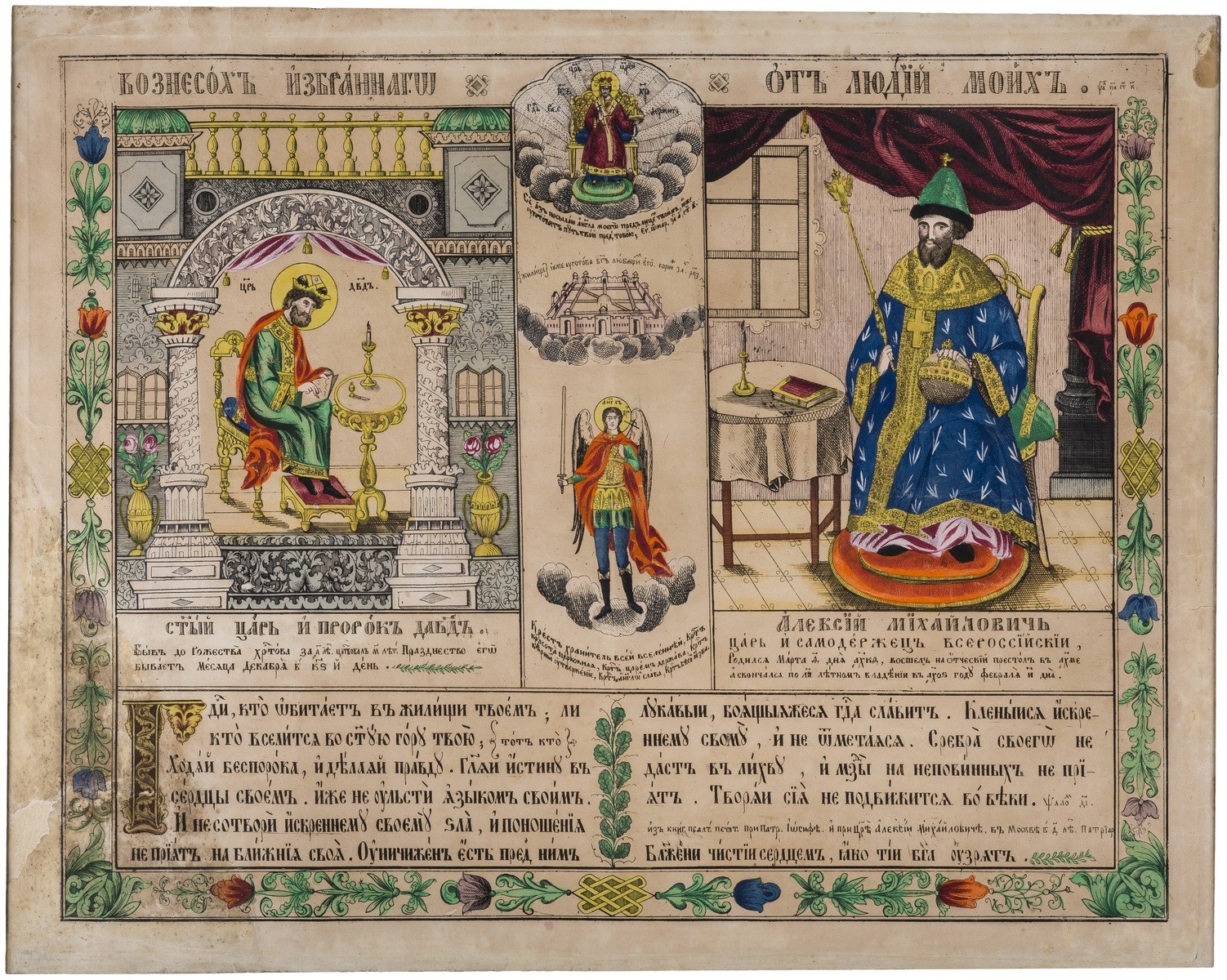 Офорт с акварельной раскраской от руки.