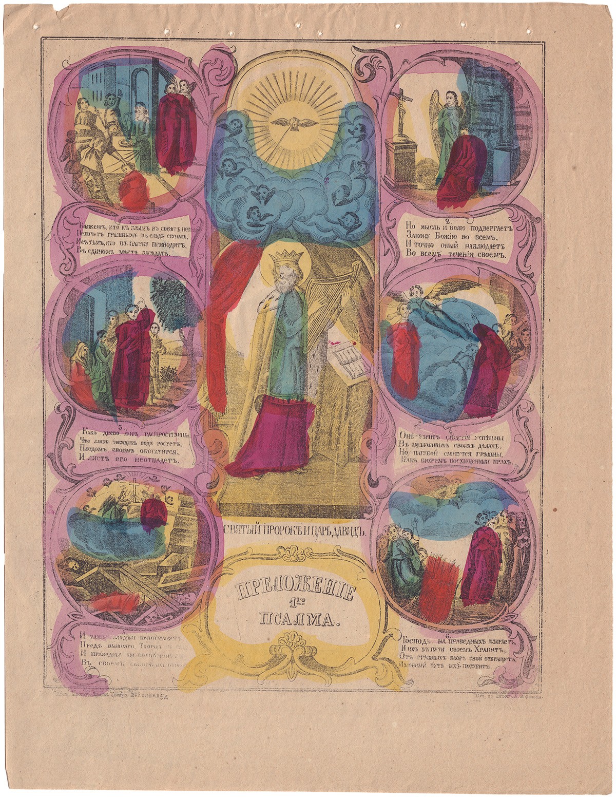 Лубок «Преложение 1-го псалма. Святой пророк и царь Давид». - М.: Лит. А.В. Морозова, 1870-е. - 44х34 см.