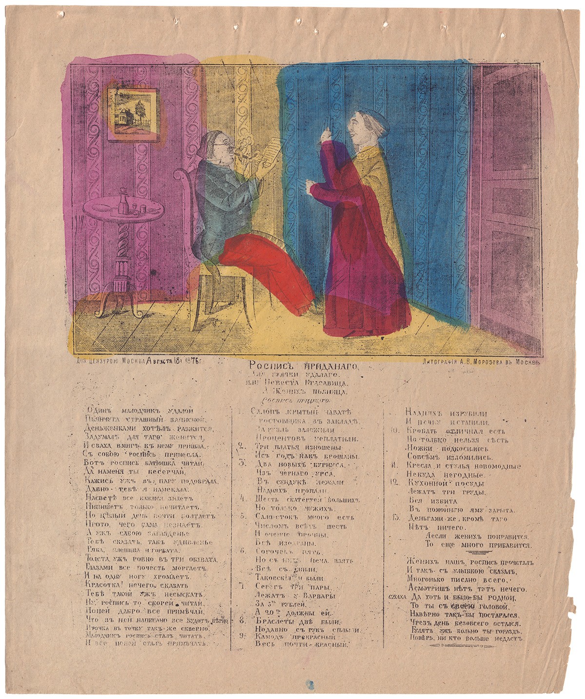 Лубок «Роспись приданного». - М.: Лит. А.В. Морозова, 1876. - 43х35 см.