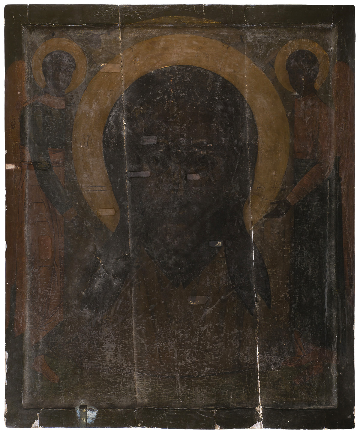 Дерево, темпера, левкас. Шпонки сквозные. В верхней части композиции представлены два ангела, поддерживающие убрус с образом Спаса Нерукотворного.
