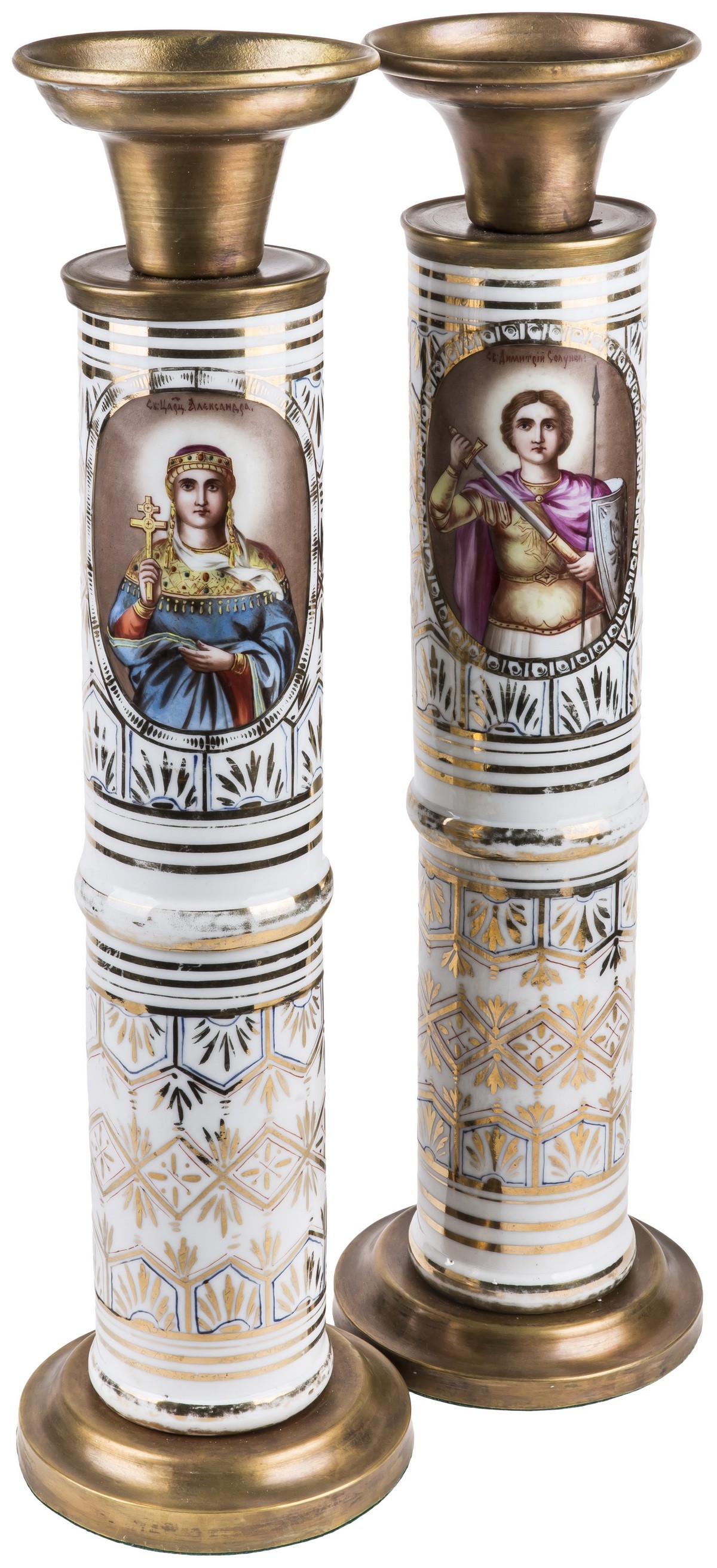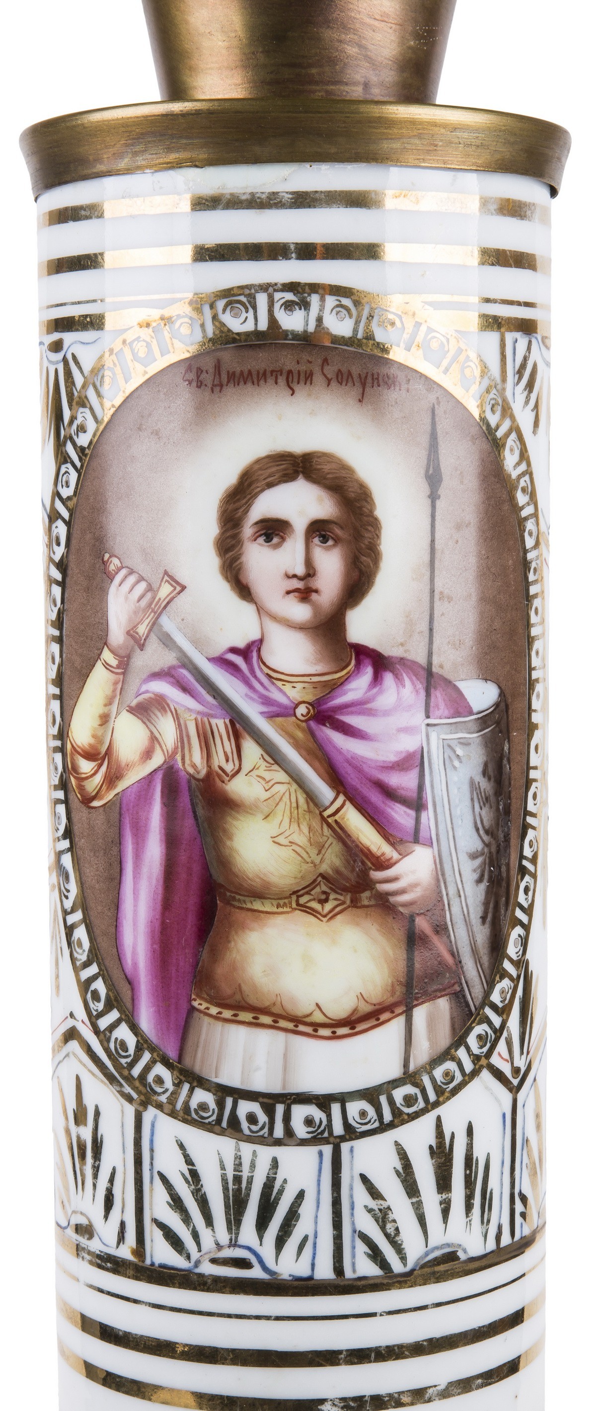 В верхней части подсвечника «Дмитрий Солунский» незначительная реставрация фарфора.
