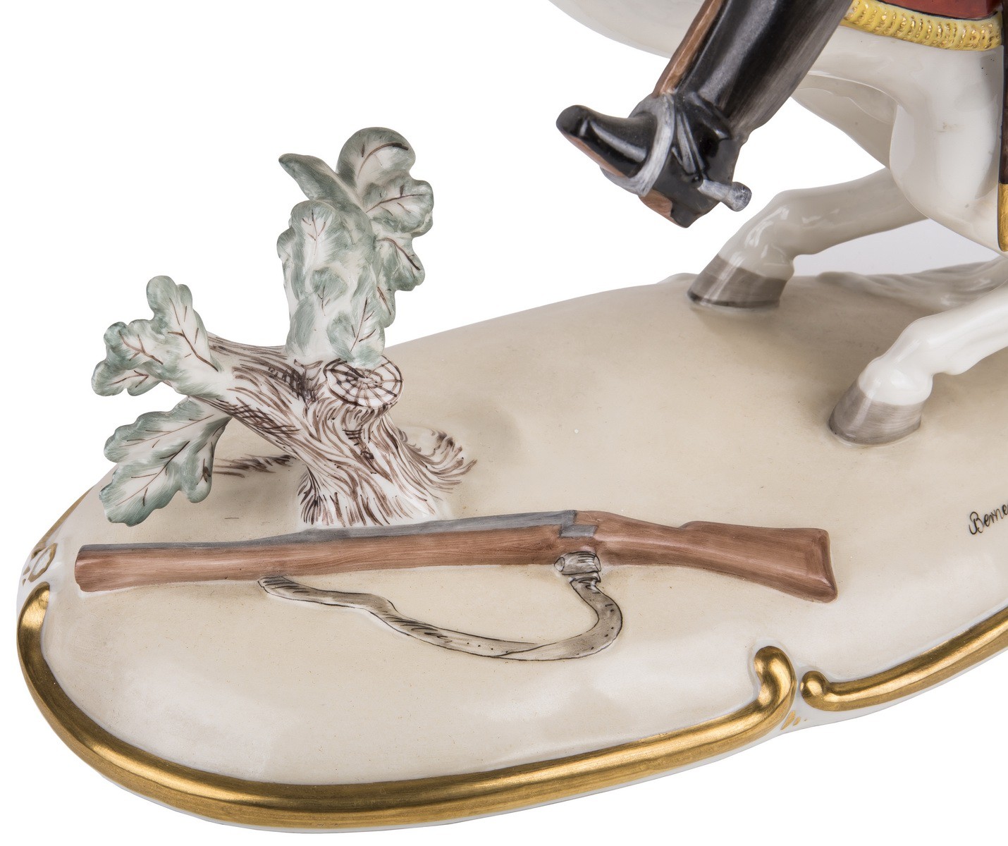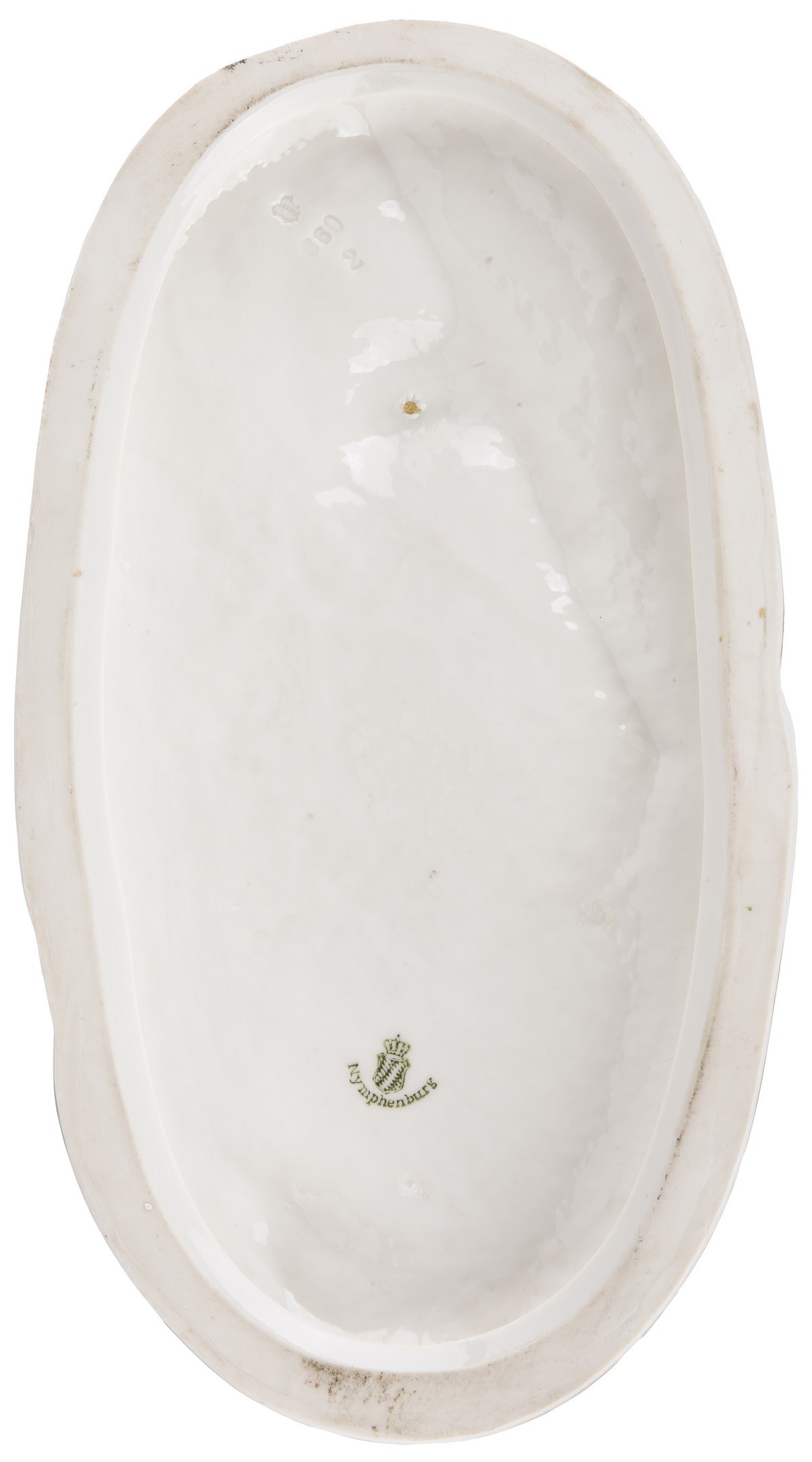 Фарфор, роспись, золочение. Марка: зеленая подглазурная «щит под короной» с подписью «Nymphenburg». Метки в тесте: щит и цифры.
