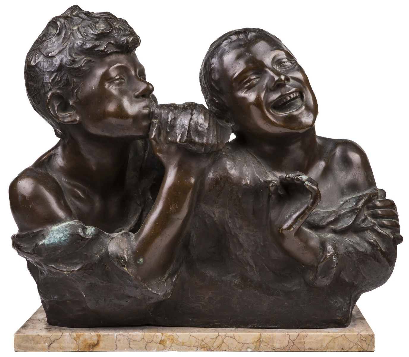 Бронза, поделочный камень. Литье, монтировка. В основании композиции авторская подпись.
