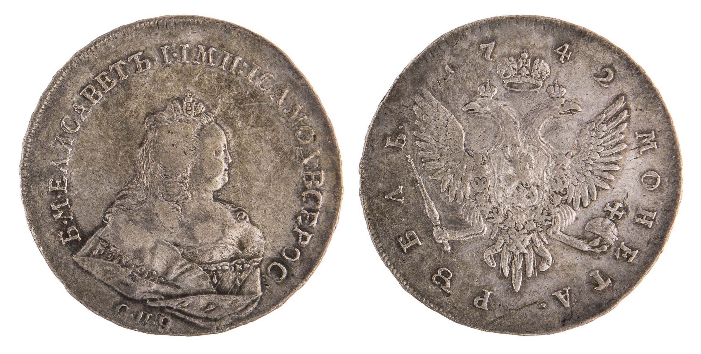 Перечекан из рубля Иоанна Антоновича 1741 года. Санкт-Петербургский монетный двор. Подобна: Биткин № 245.
