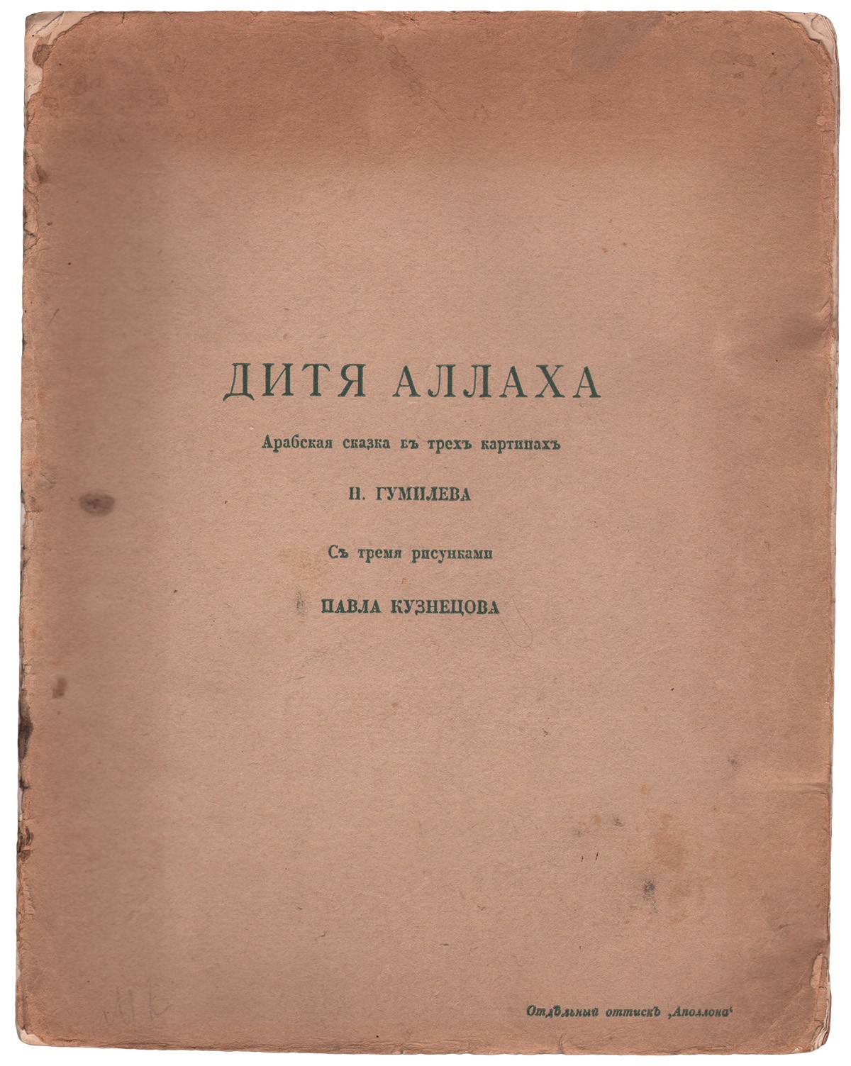 В издательской обложке. Издание выходило без титульного листа. Отдельный малотиражный оттиск из «Аполлона». Полностраничные иллюстрации на вклейках.