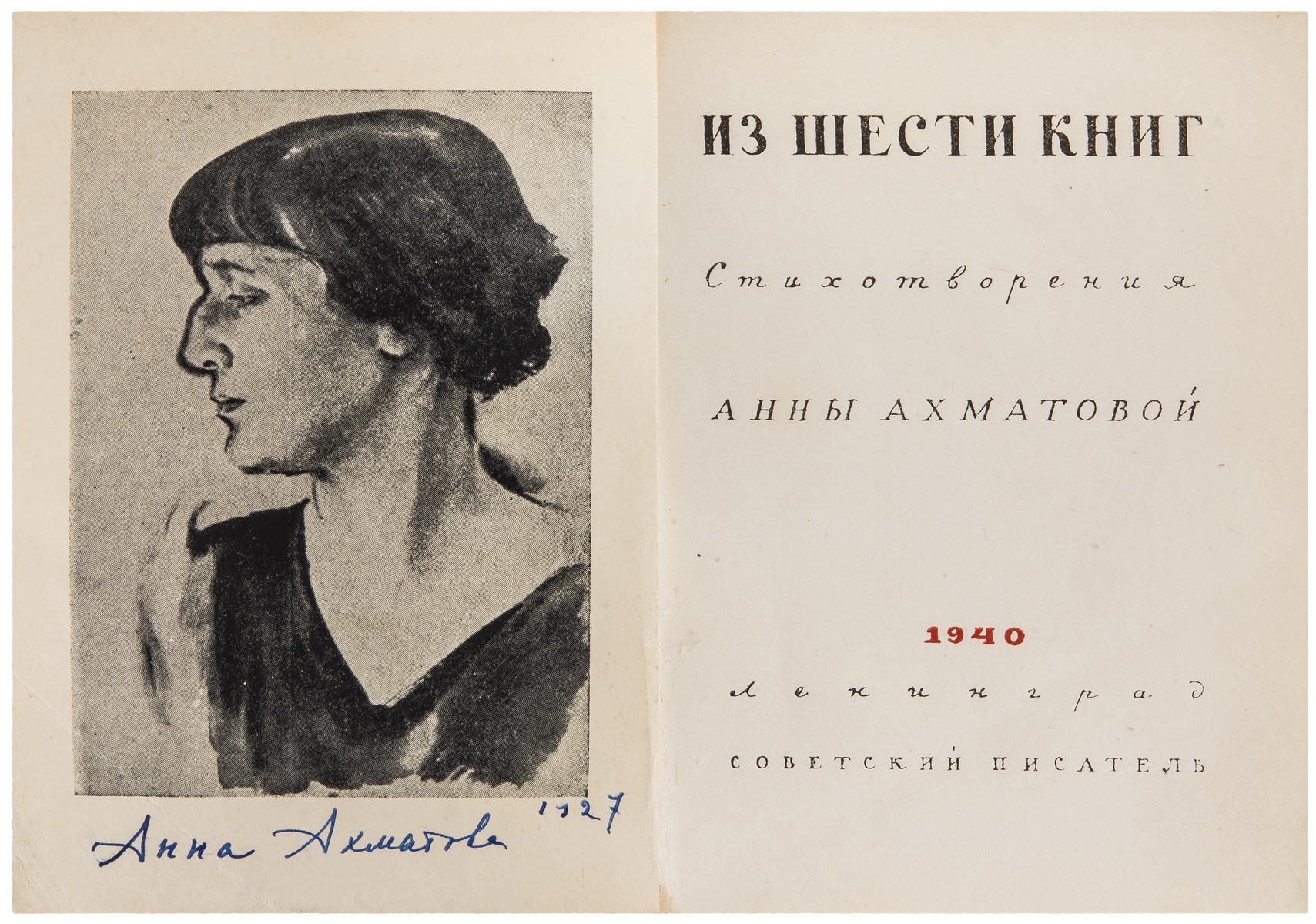 Владельческий составной переплет эпохи. Штемпельный экслибрис «П.Б. Посвянский» на своб. л. форз. и обор. фронтисписа с портретом поэтессы работы Н.А. Тырсы. Под портретом синими чернилами: «Анна Ахматова / 1927 [имеется в виду год создания портрета]».