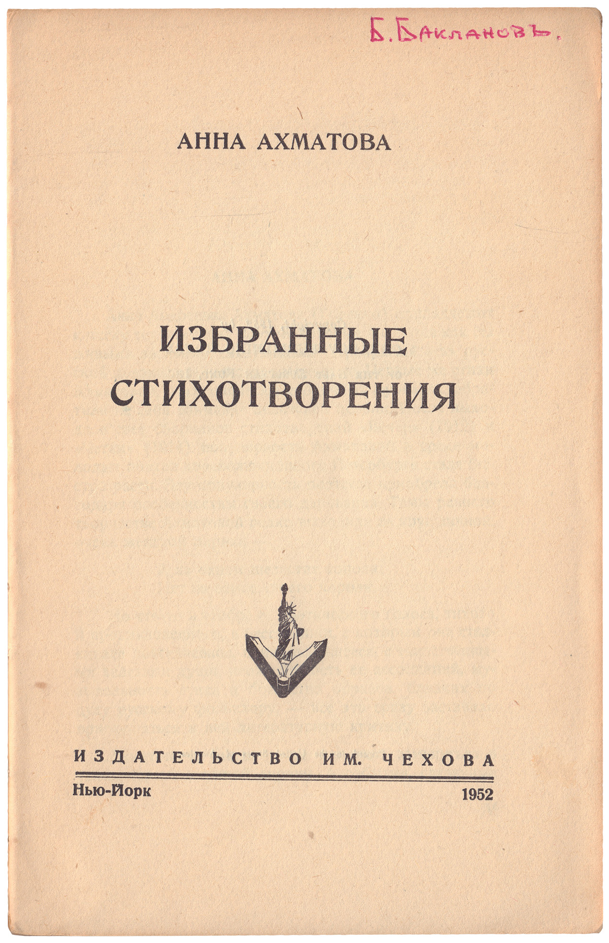 Сборник избранных стихотворений А.А. Ахматовой был напечатан Издательством имени Чехова в первый год своего существования. К этому времени в СССР творчество поэта было признано вредным для советской молодежи, так как Ахматова «является выразительницей чуждых советскому народу настроений» (постановление ЦК КПСС 1946 г.). Сборник, изданный в Нью-Йорке, вышел без оповещения Ахматовой. Составители включили в него стихи, написанные до 1945 г.: стихотворения периода Второй мировой войны, а также стихи из циклов «Ива», «Anno Domini», «Подорожник», «Белая стая», «Четки» и «Вечер».