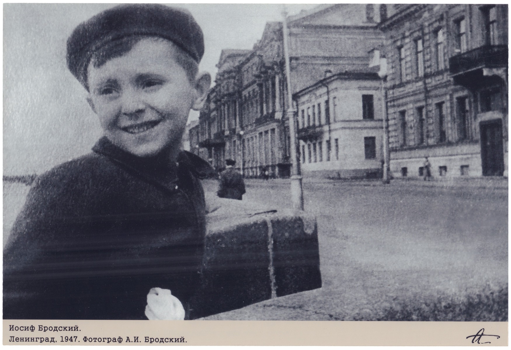 Александр Иванович Бродский (1903-1984) — журналист, фотограф, капитан 3-го ранга ВМФ СССР. Военный корреспондент финской, Великой Отечественной и японской войн. Создатель факультета фотожурналистики при Ленинградском доме журналиста (1959). Работал с такими изданиями как «Известия» и Лен-ТАСС. Отец Иосифа Бродского. Иосиф Александрович Бродский (1940–1996) – поэт, эссеист, драматург, переводчик, лауреат Нобелевской премии по литературе 1987 года. Один из крупнейших русских поэтов XX века. Родился в Ленинграде. Раннее детство Иосифа пришлось на годы войны, блокады, послевоенной бедности и прошло без отца. В 1942 году после блокадной зимы Мария Моисеевна с Иосифом уехала в эвакуацию в Череповец, вернулись в Ленинград в 1944 году. Эстетические взгляды Бродского формировались в Ленинграде 1940—1950-х годов. Неоклассическая архитектура, сильно пострадавшая во время артобстрелов и бомбёжек, бесконечные перспективы ленинградских окраин, вода, множественность отражений, — мотивы, связанные с этими впечатлениями его детства и юности, неизменно присутствуют в его творчестве.