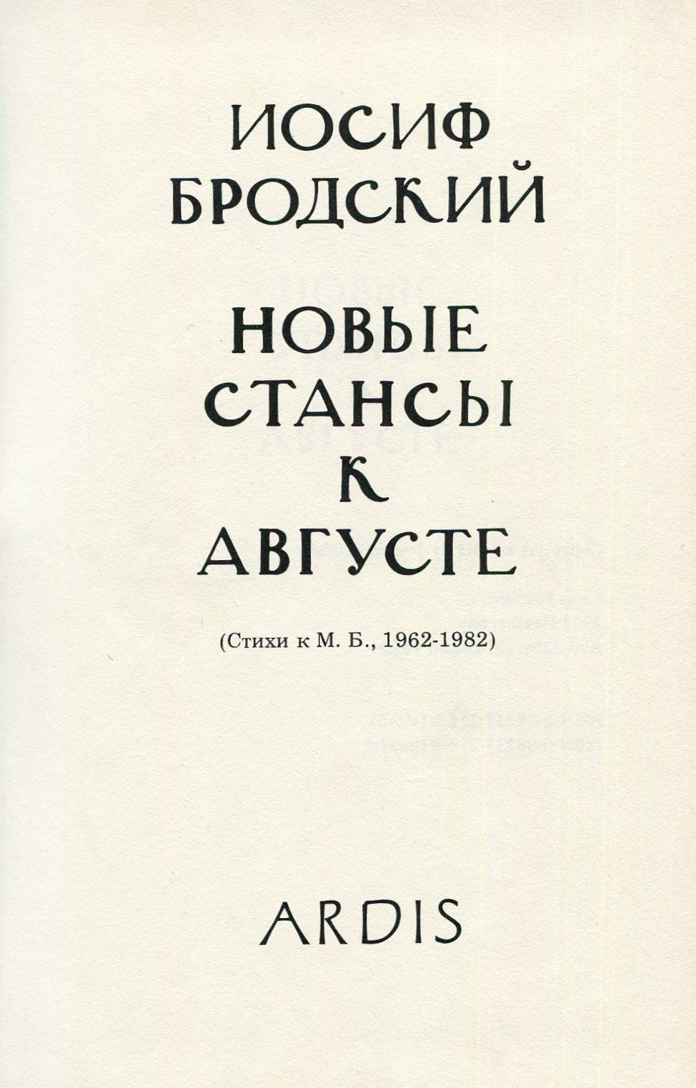 В тканевом «немом» издательском переплете, тиснение на корешке. Включает стихотворения, обращенные к Марине Басмановой – возлюбленной Бродского на протяжении почти всей жизни и матери его сына Андрея Басманова.