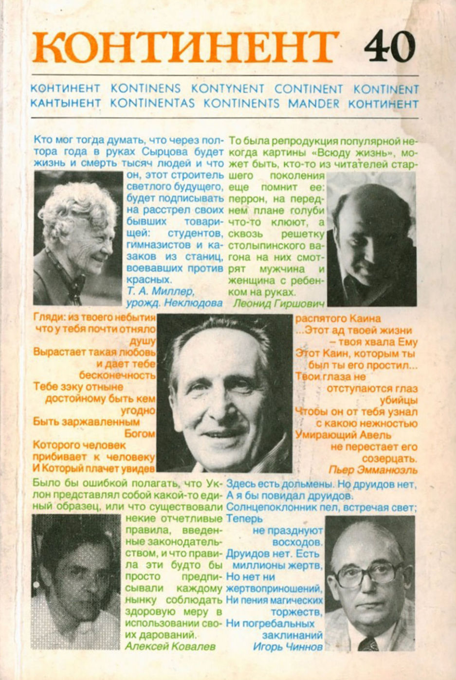 В иллюстрированных издательских обложках. В номере 40 - Бродский, И.А. "Литовский ноктюрн: Томасу Венцлова". Среди авторов номера 54 - Иосиф Бродский, Евгений Звягин, Михаил Еремин, Анатолий Шварц, Марианна Озерная, Владимир Максимов, Игорь Чиннов, Сергей Петрунис, Светлана Шенбруни, Белла Дижур, Игорь Бирман, Борис Парамонов, Кира Сапгир, Лев Лосев, Юрий Мамлеев и другиеВ номере 58 опубликованы стихи Иосифа Бродского, Генриха Сапгира, проза Георгия Владимова, Василия Агафонова и др., а также - первая публикация рассказа Сергея Довлатова "Встретились, поговорили".