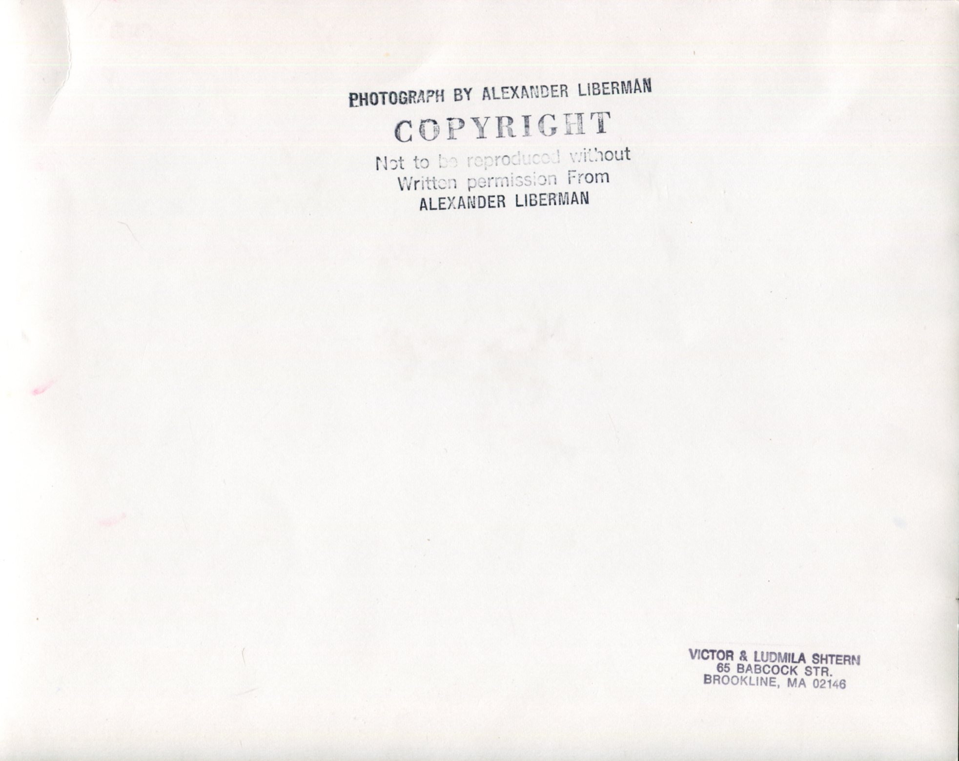 НА обороте штамп Александра Либермана и Людмилы и Виктора Штернов. Фотография Иосифа Бродского была сделана в имении Либерманов, где поэт часто гостил.