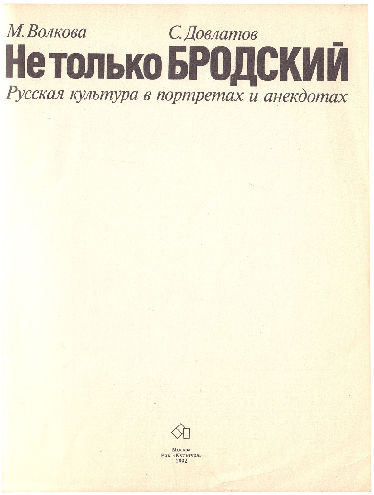 В издательской иллюстрированной обложке. Книга-альбом с фотографиями известных деятелей современной отечественной культуры (метрополии и русского зарубежья), сделанные М. Волковой, которые даны в сопровождении специально написанных к ним текстов С. Довлатова.