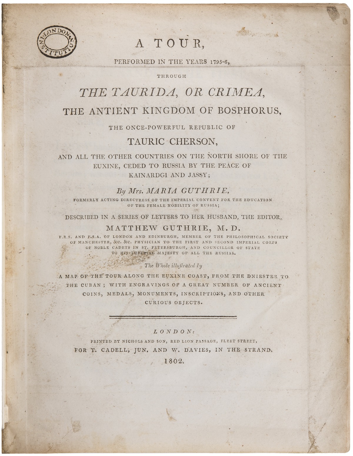 Сочинение «Путешествие по Тавриде...» представлено как описание путешествия его покойной супруги Мэри, описанное ею в письмах к мужу. Мэттью Гатри же указан как редактор. Несмотря на все это, исследователи однозначно определяют это сочинение как написанное в жанре популярного в эпоху Просвещения «вымышленного путешествия» самим доктором Гатри. Примечательно, что современники, по всей видимости, не догадывались об авторе текста, зачастую находя в нем признаки особого «женского взгляда» на Крым.