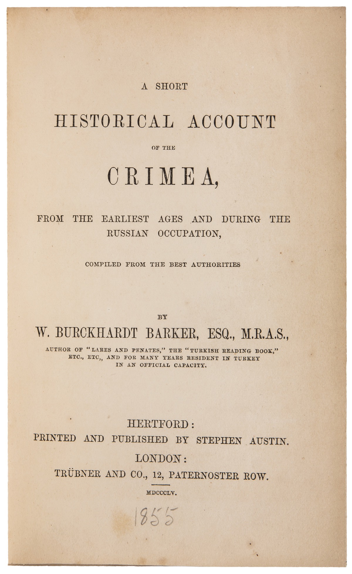 Уильям Буркхардт Баркер (1810–1856) — востоковед, сын Джона Баркера, крестник путешественника Иоганна Людвига Буркхардта. В 1830-е путешествовал по Ближнему Востоку, в дальнейшем преподавал арабский, турецкий, персидский языки, а также хинди и другие языки Индостана в Итоне.
