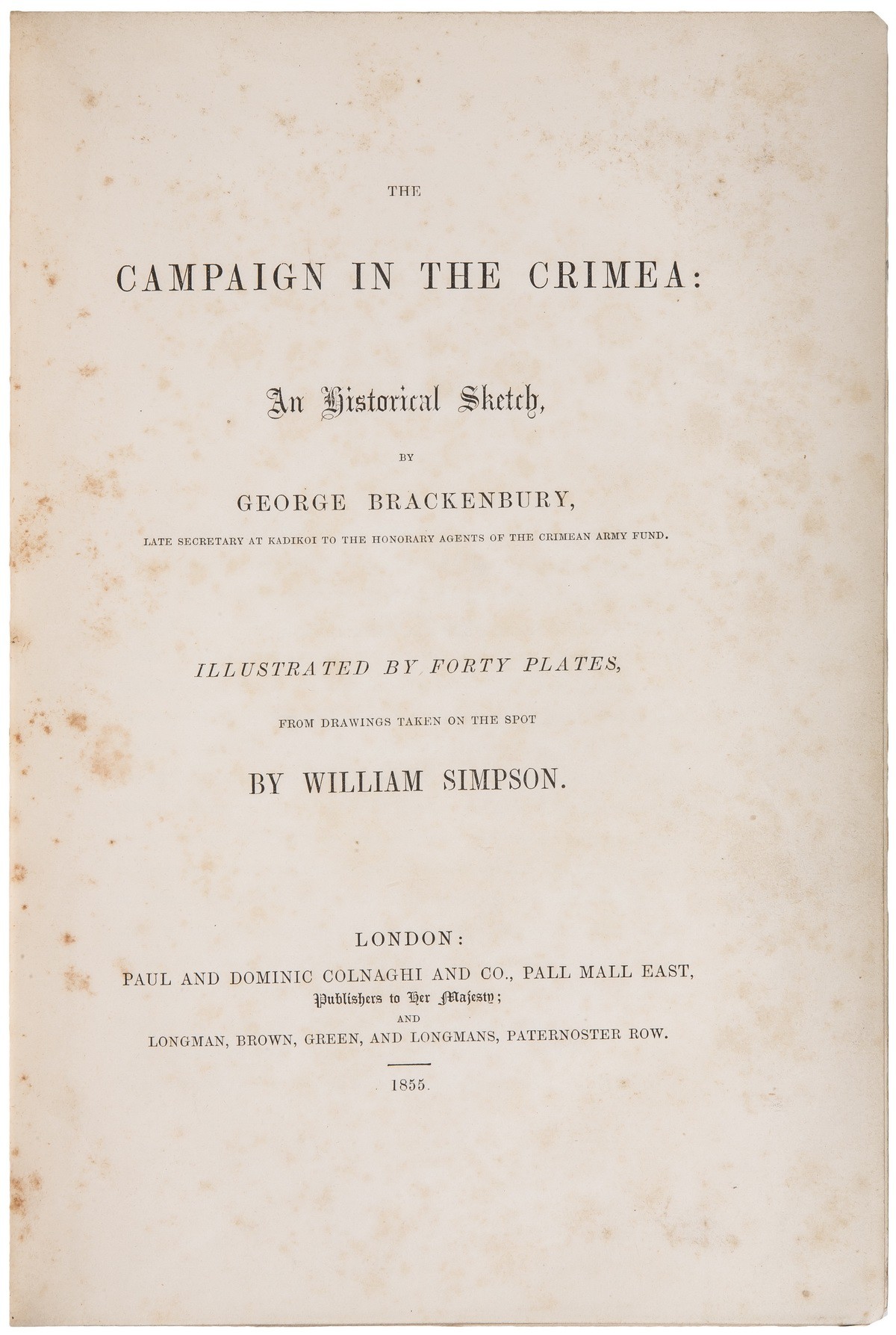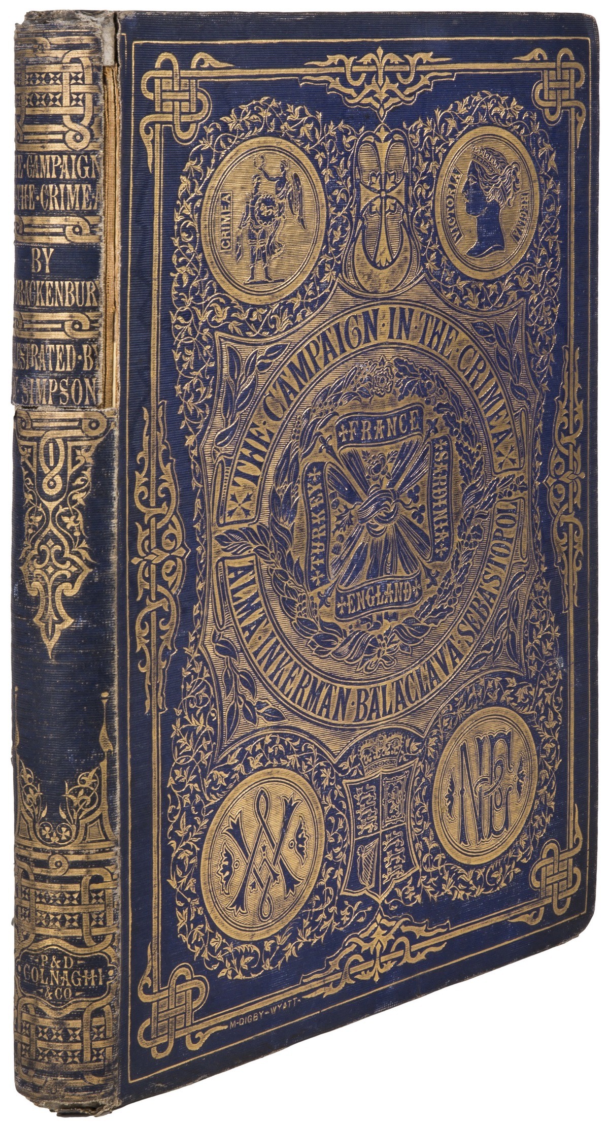 В коленкоровом переплете эпохи мастерской Мэтью Дигби Уайатта с художественным золотым и блинтовым тиснением по крышкам и корешку. Тройной золотой обрез. На англ. яз. 39 гравированных иллюстраций и гравированный титульный лист (=40 гравюр) со сценами Крымской войны.