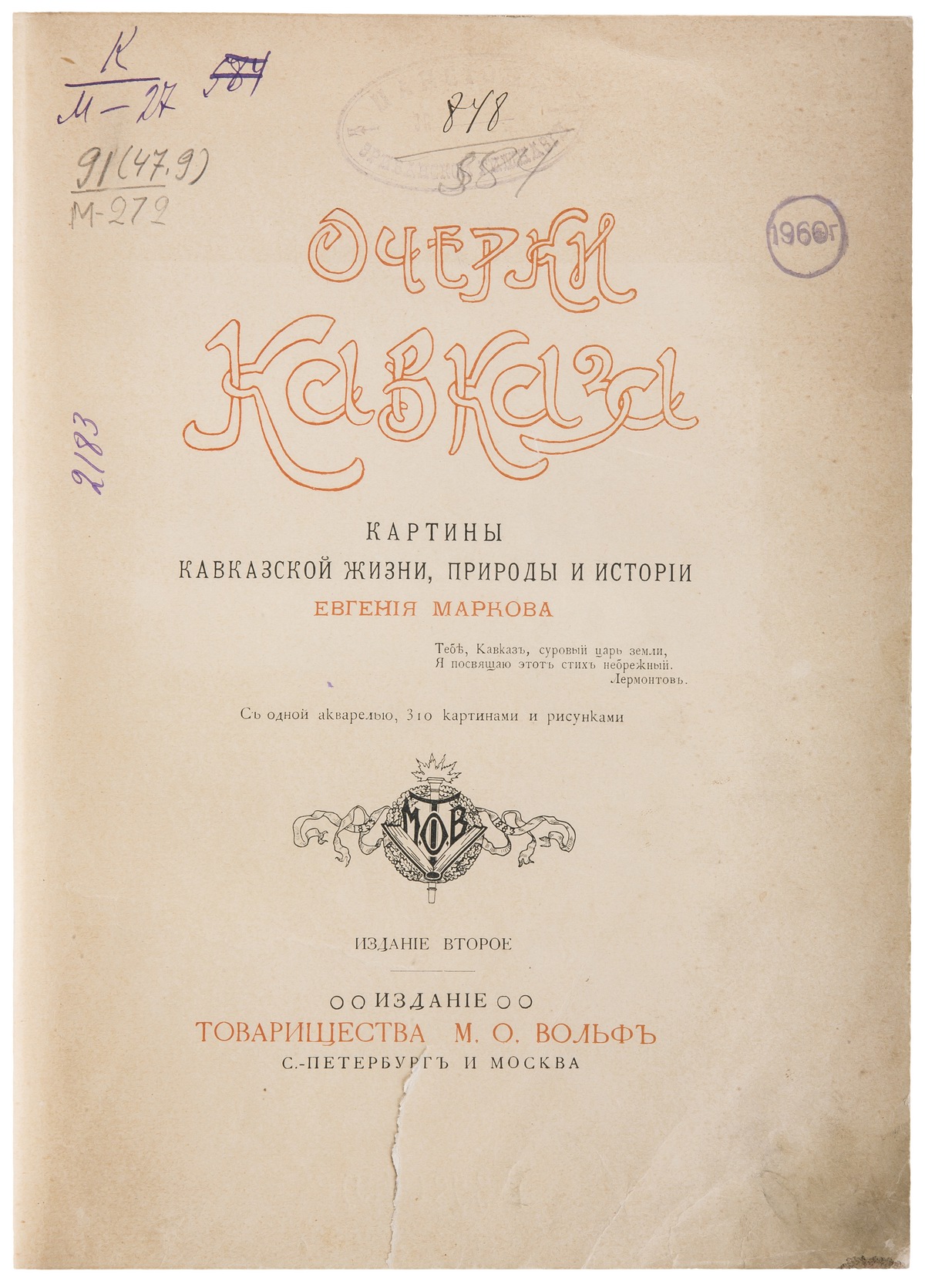 Общие потертости переплета. Отсутств. л. фронт. Доревол. шт. и шт. Армян. библ. на тит. л., некоторых лл. ил. и сс. Надрывы авантит. и тит. лл., нескольких сс.