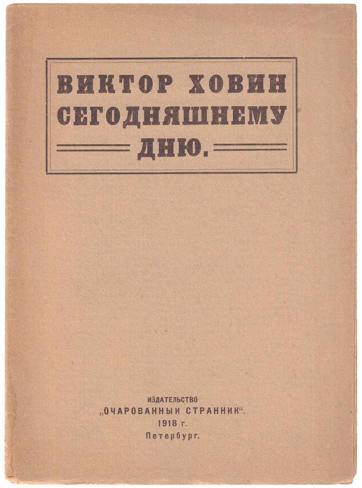 Виктор Романович Ховин (1891-1944) - литературный критик, издатель, журналист, книготорговец, руководитель и владелец издательства «Очарованный странник» и магазина «Книжный угол». С 1920х был вхож в круг эгофутуристов, однако с 1918 года начал выступать с резкой критикой футуристов, за их сотрудничество с новой властью и «боязливо взволнованный, испуганно льстивый <...> тон» перед «новым хозяином культуры» — пролетарским искусством. «Не навязывайте нам своего „пролетарского искусства“, этого неведомого нам икса. И помните, что мы так же далеки от желания признать в „пролетарии“ хозяина новой культуры, как непреклонны были в борьбе своей со старым хозяином мира....». Блюм № 1037.