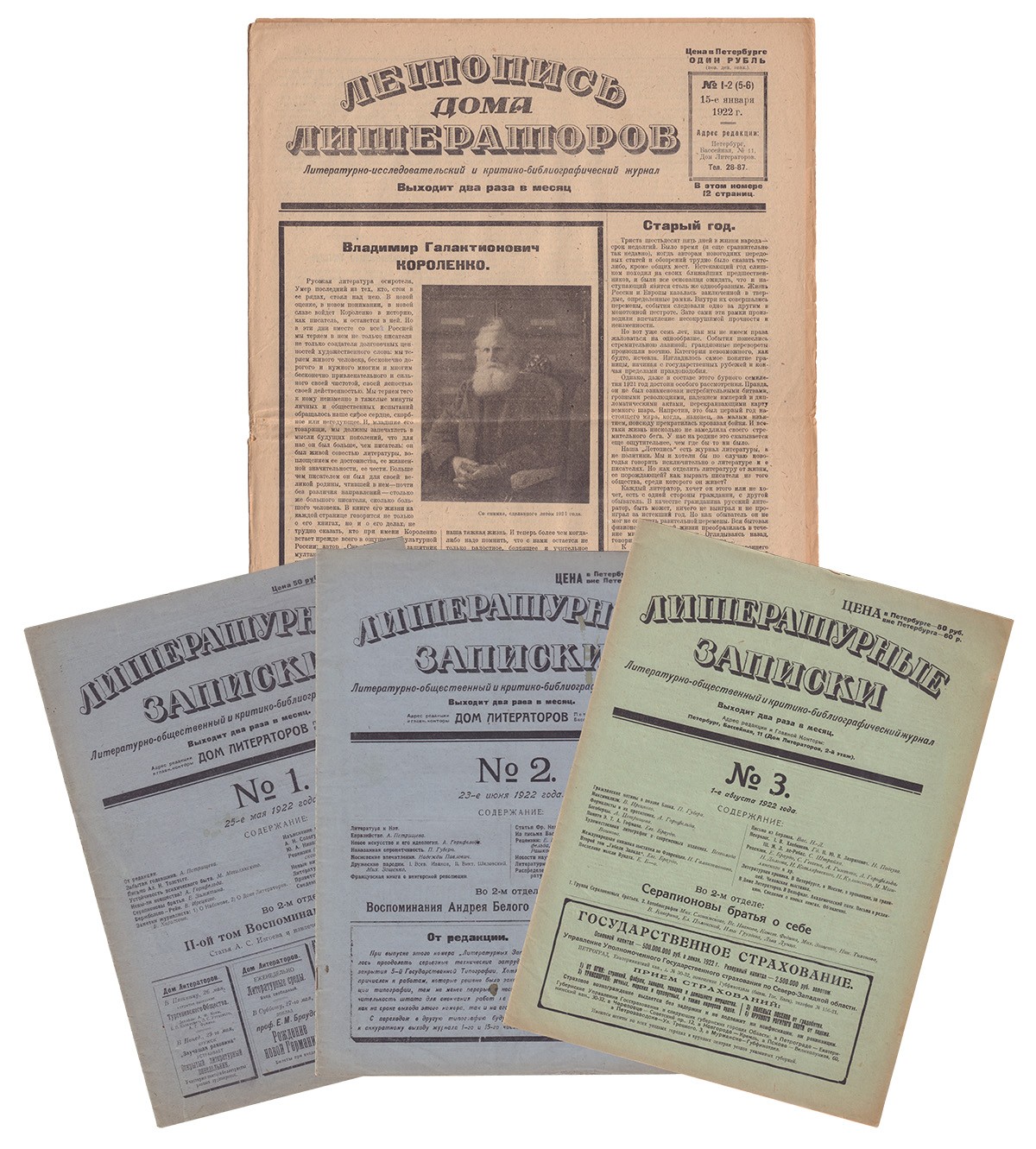 Летопись Дома Литераторов : Литературно-исследовательский и критико-библиографический журнал. - №1-2 (5-6) (15 января). - Пб.: Комитет Дома Литераторов, 1922. - 12 с.: ил.; 46,4х31,7 см. - 3 750 экз.