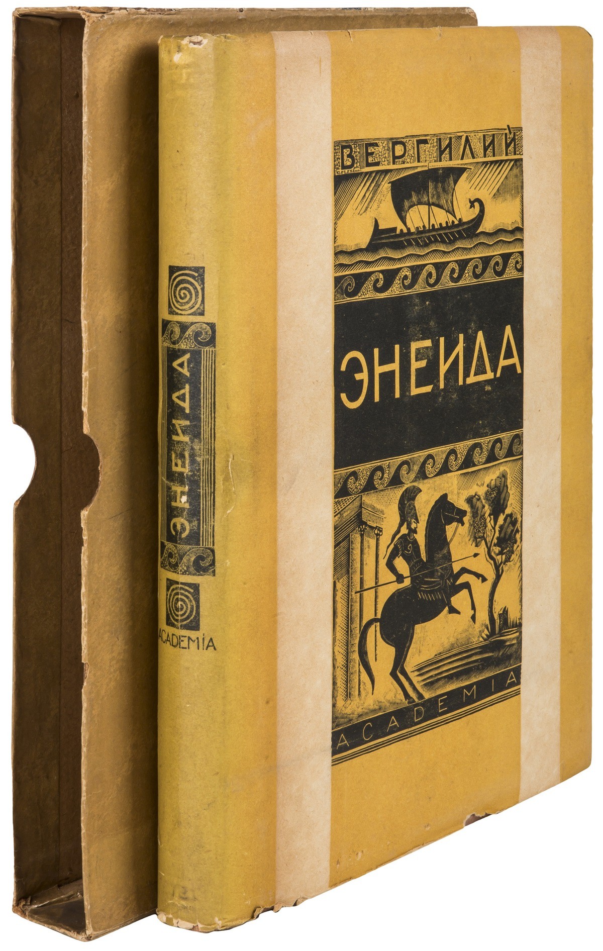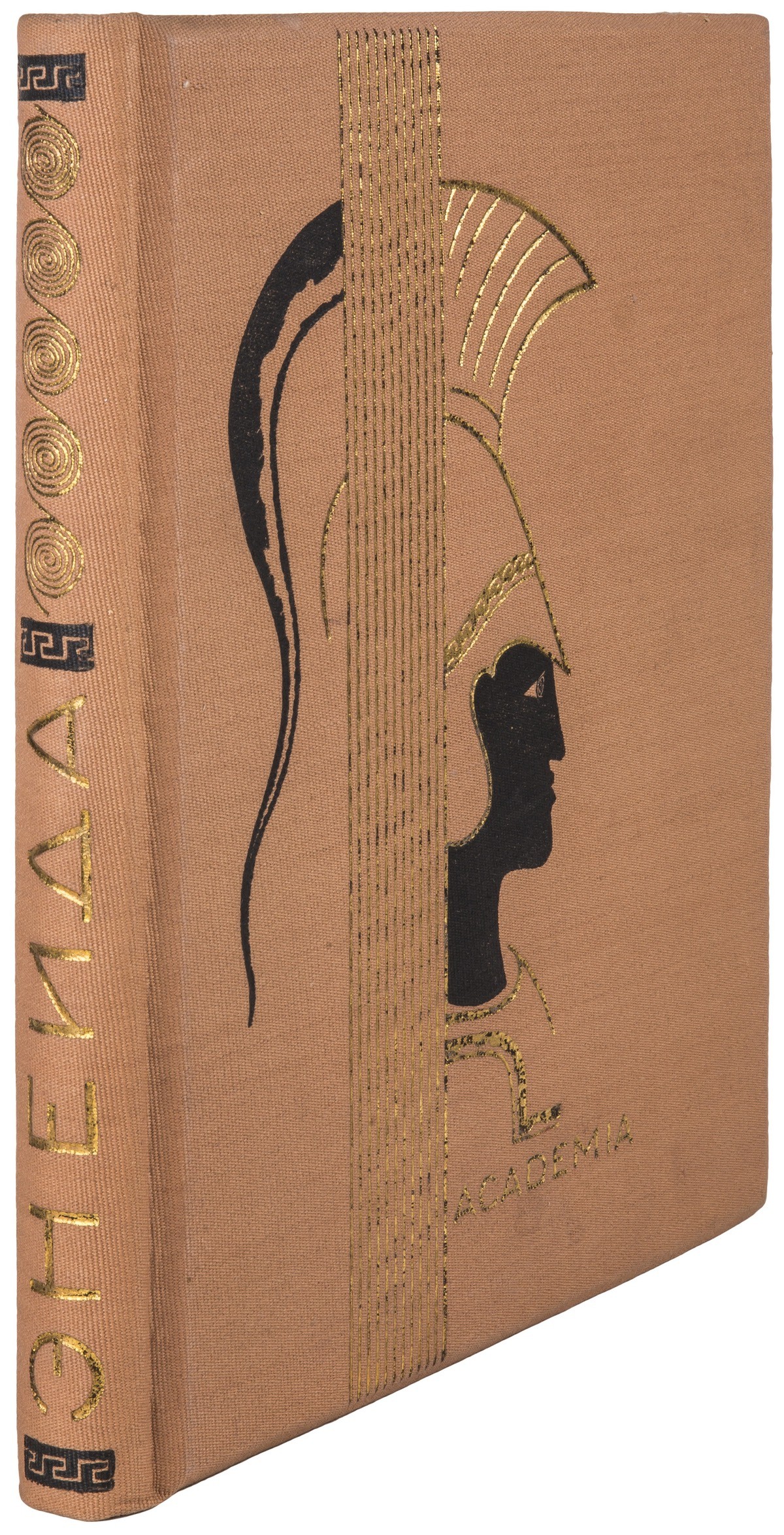 В цельнотканевом издательском переплете с чернокрасочным и золотым тиснением по передней крышке и корешку и иллюстрированной суперобложке. Картонажный футляр с гравированной наклейкой. Тонированная «головка». Иллюстрированные форзацы. Суперобложка, переплет, форзацы и иллюстрации работы Л.С. Хижинского.