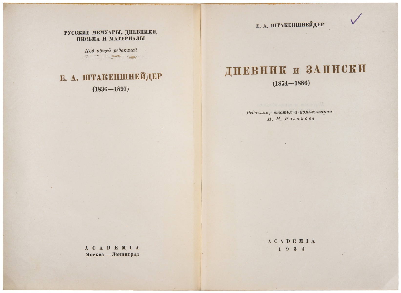 Дневник Е.А. Штакеншнейдер — ценный материал, главным образом, для характеристики русского общественного движения конца 50-х и 60-х годов. Вращавшаяся в кругах литераторов и художников, впечатлительная и вдумчивая Штакеншнейдер остро переживает жизнь своего времени, давая интересные зарисовки встреченных ею людей Достоевского, Лаврова, Михайлова, Полонского и др. Настоящая публикация дневника основана на руколисных материалах и воспроизводит наиболее существенные части литературного наследства Штакеншиейдер. «Academia» № 693.