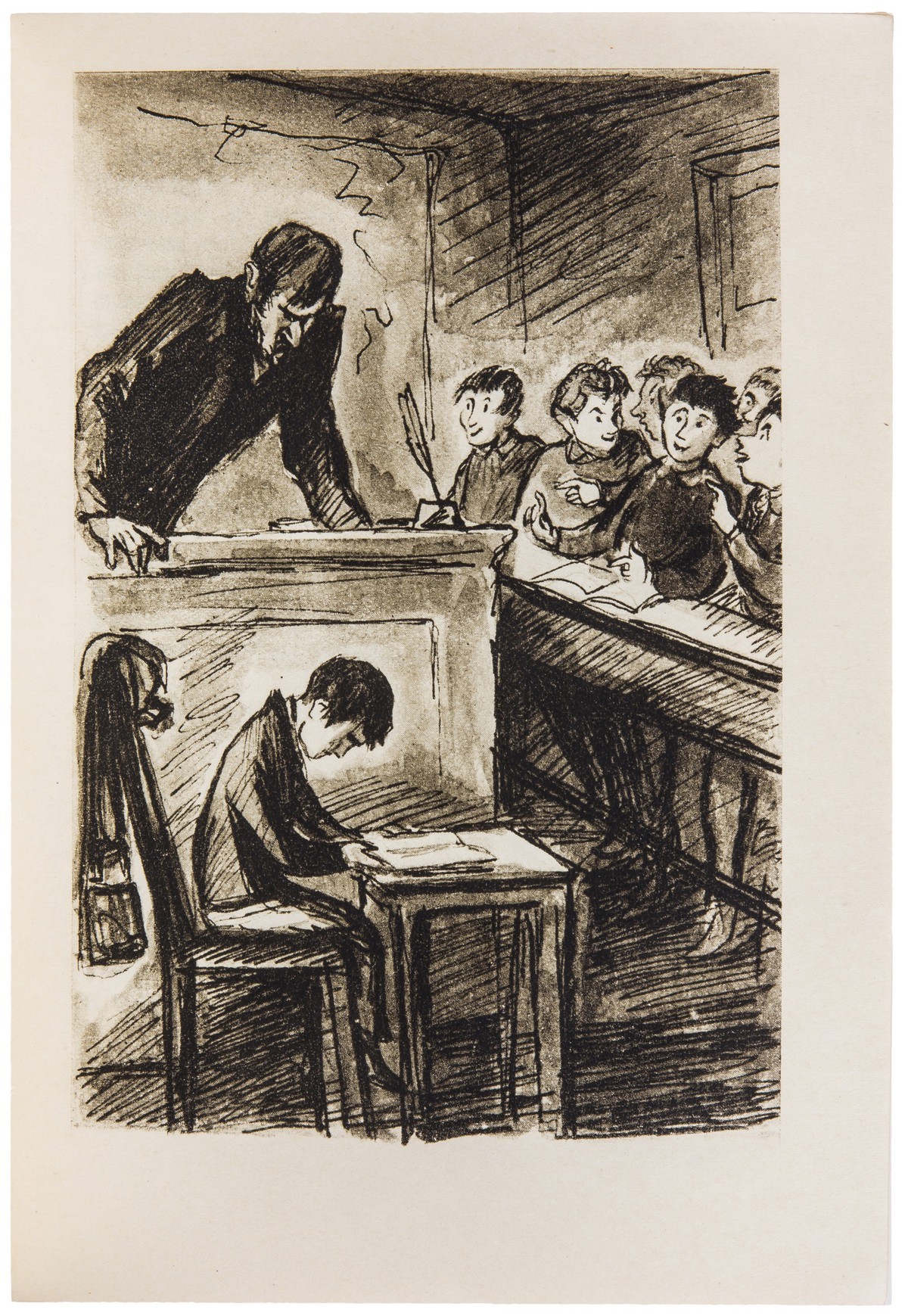 В коленкоровом издательском переплете с блинтовым тиснением по передней крышке и корешку и иллюстрированной суперобложке. Тонированная «головка». Рисунки, переплет и суперобложка работы С. Шор.