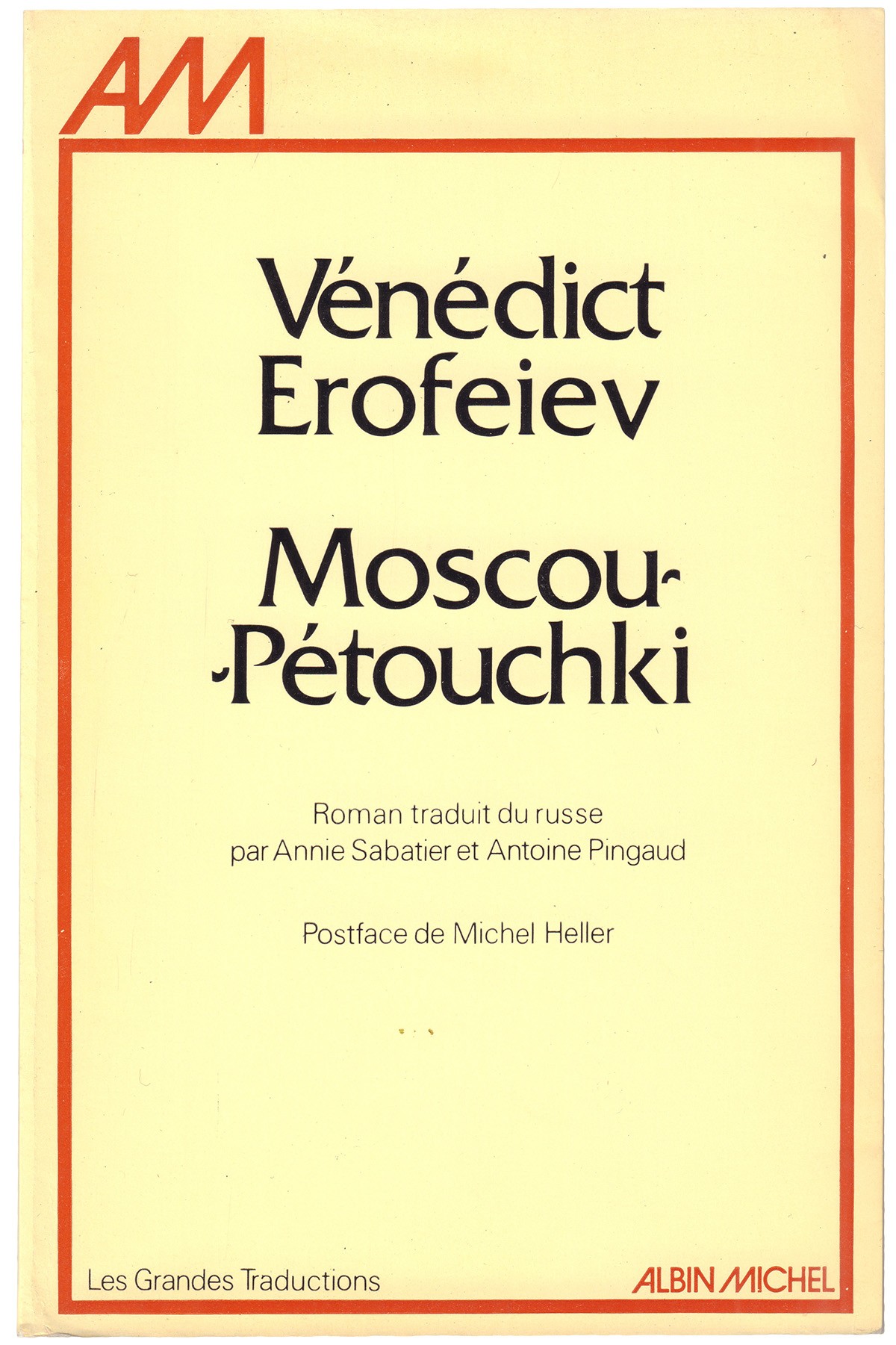 В издательской шрифтовой обложке и иллюстрированной суперобложке. На фр. яз. Примечательно, что многие переводы поэмы, датирующиеся 1970-80ми годами — как европейские, так и американские, выходили под сильно видоизмененными названиями. Так, «Москва на водке» также будет фигурировать в нидерландском издании 1976 года (изд. G. A. van Oorchot, "Moskov op Sterk vater"), в 1980 г. выйдет «Москва до конечной» (изд. Taplinger, "Moscow to the End of the Line"), а в 1981 г. поэма прозвучит как «Московские круги» (изд. Writers and Readers Publishing Cooperative, "Moscow Circles").