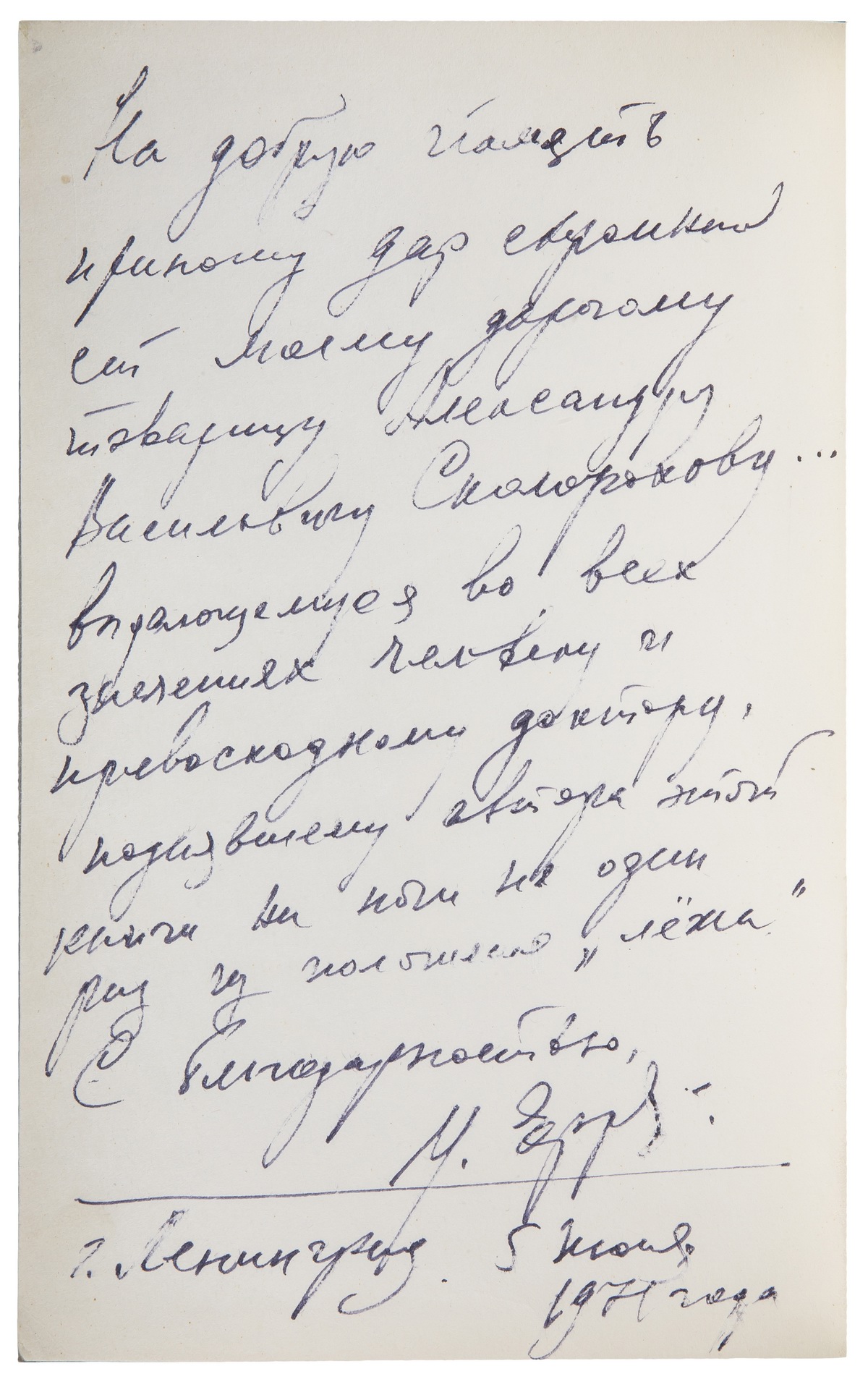 Собственноручная дарственная надпись писателя-фантаста на своб. л. форз.: «На добрую память / приношу дар скромный / сей моему дорогому / товарищу Александру / Васильевичу Сколорохову... <?> / выдающемуся во всех / значениях человеку и / превосходному доктору, / поднявшему автора этой / книги на ноги не один / раз из положения "лёжа" / С благодарностью, / И. Евремов - / г. Ленинград. 5 июня / 1971 года».