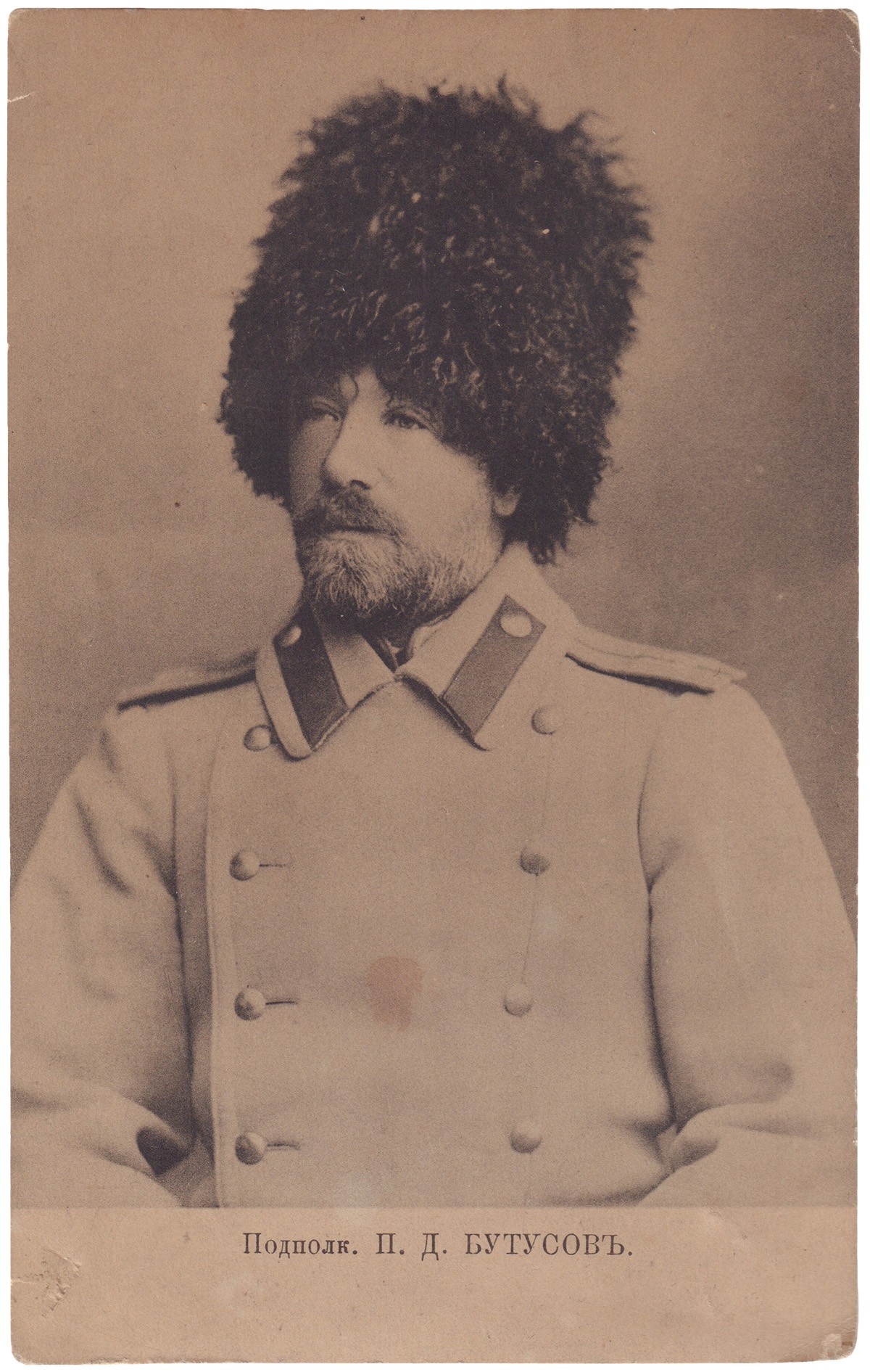 1. Фотопортрет «Подполковник П.Д. Бутусов». - М.: 1900-е. - 16х11 см. На фирменном паспарту; 2. Открытка с изображением подполковника П.Д. Бутусова. - 14х8,5 см.