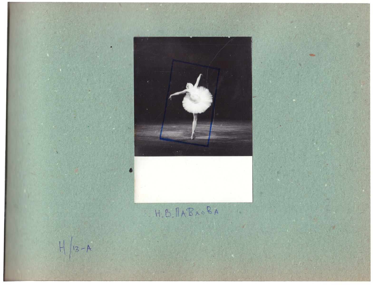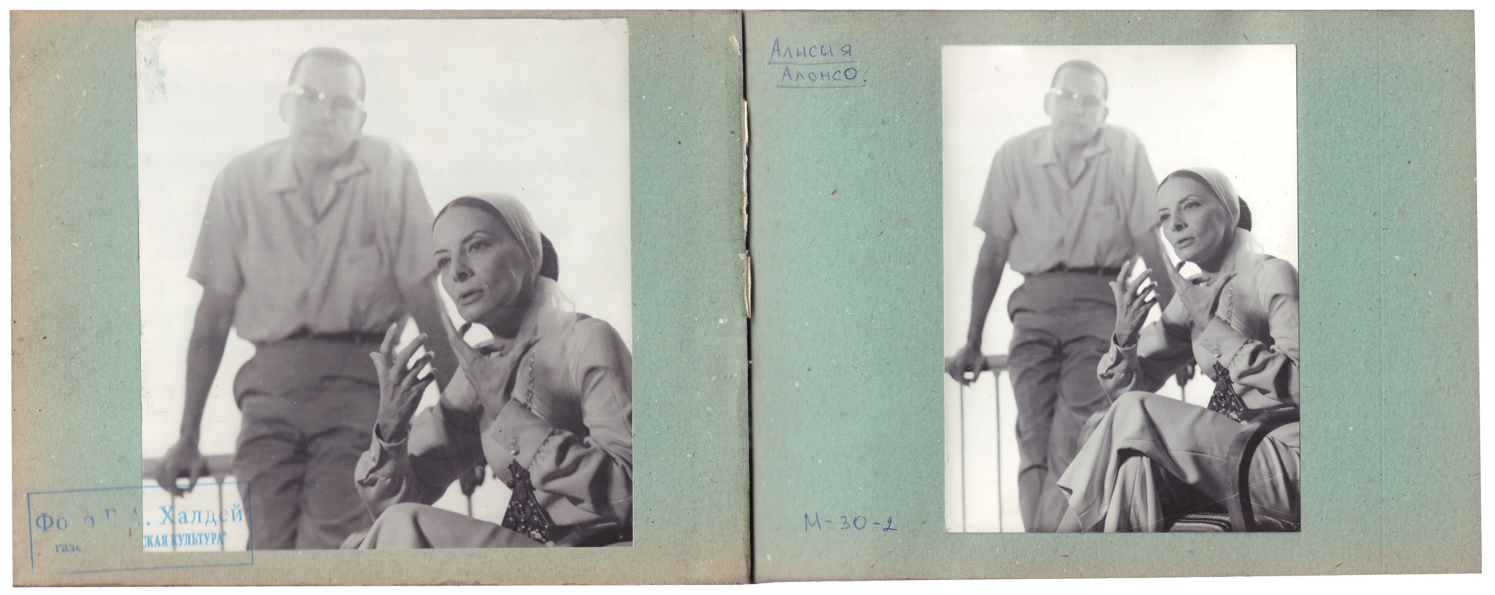 Фотоальбом в тканевом переплете. Фотографии проложены кальками. На фотографиях артисты балета: Алисия Алонсо, Надежда Павлова, Михаил Барышников.