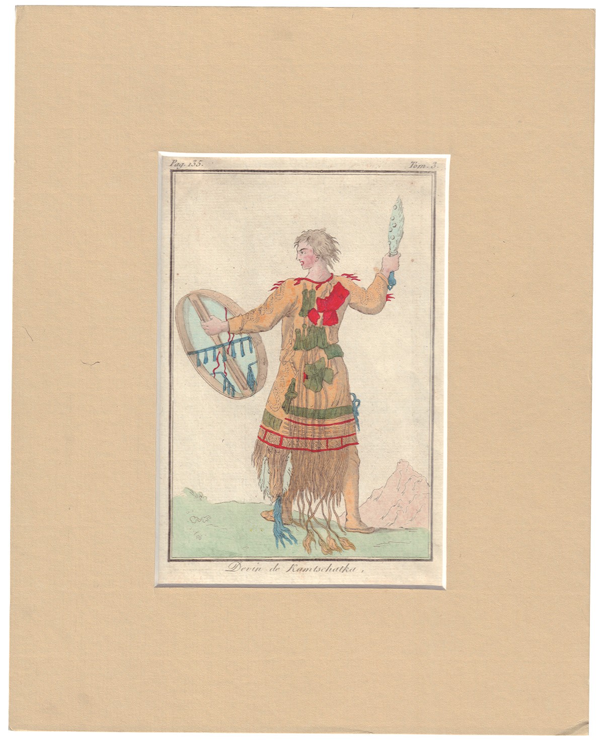 В паспарту. Офорт с акварельной раскраской от руки.