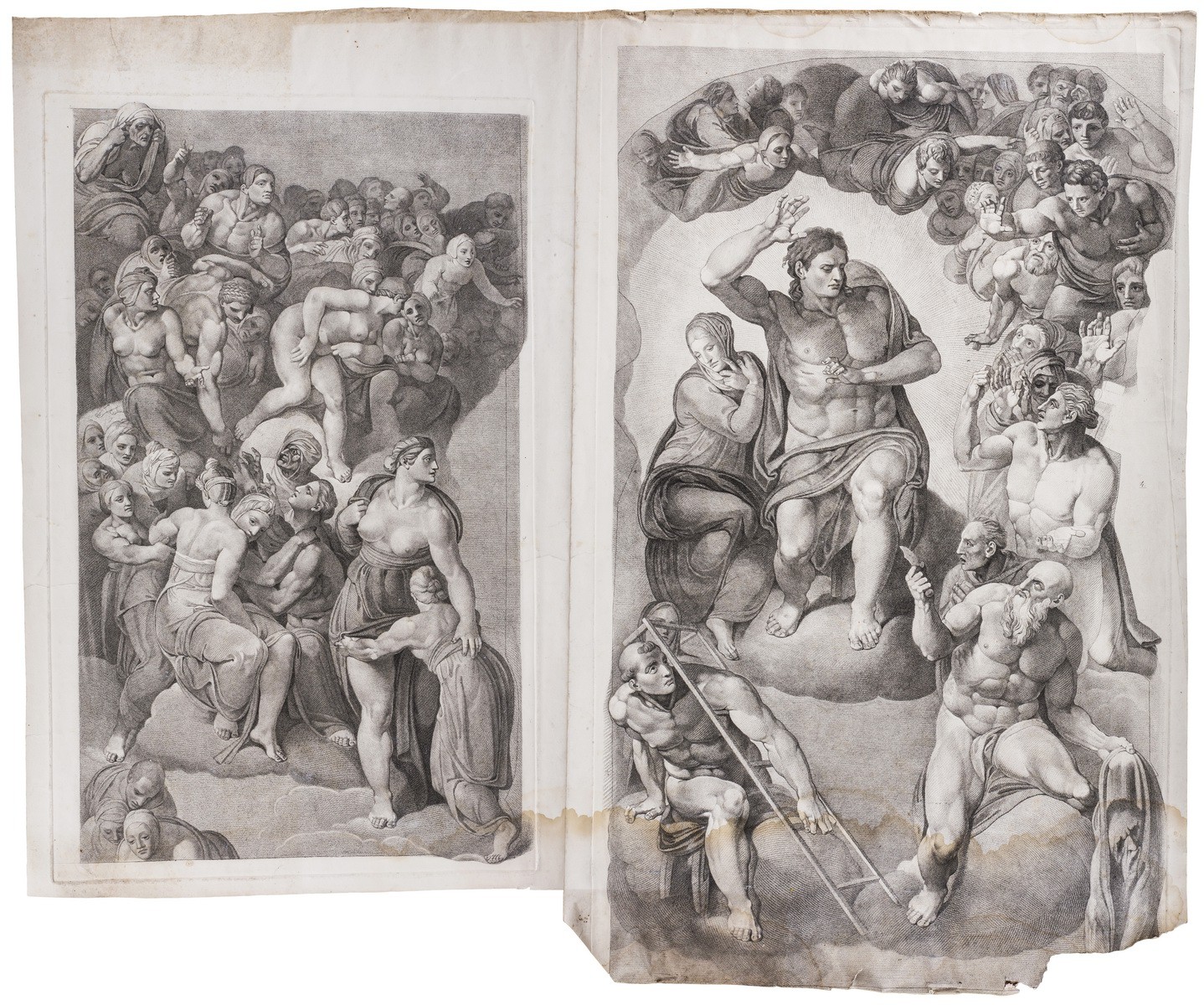 Гравюра из серии шестнадцати работ, составляющих «Страшный суд» Конрада Меца по фреске Микеланджело в Сикстинской капелле.