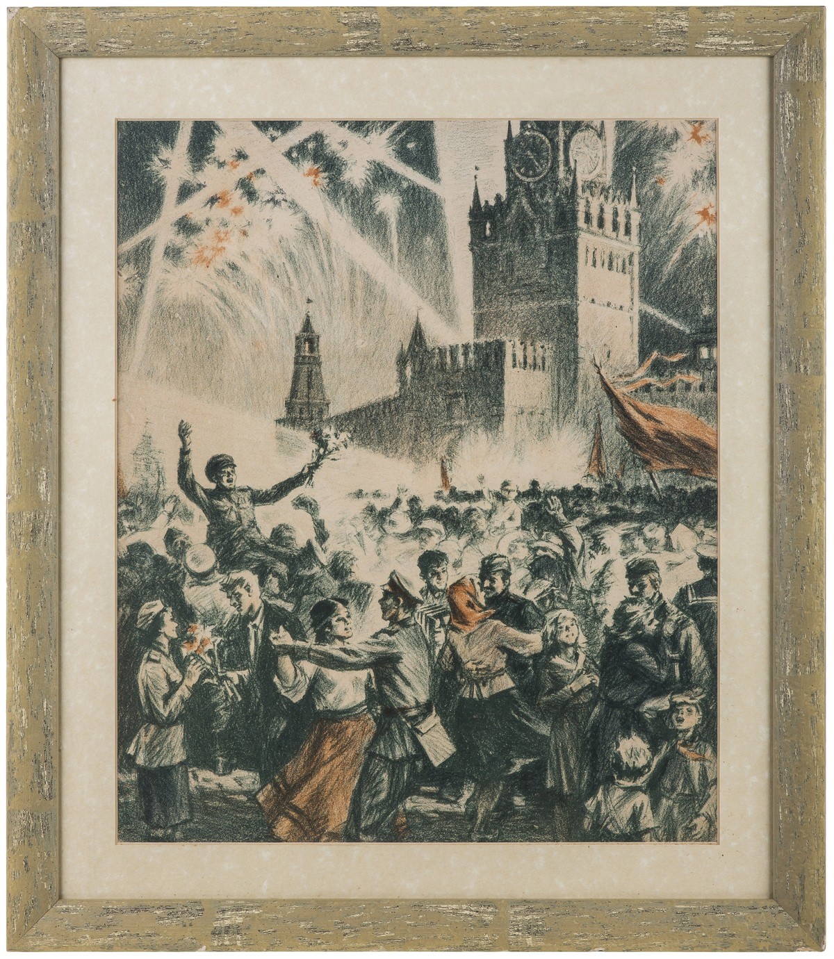 В раме, под стеклом.
