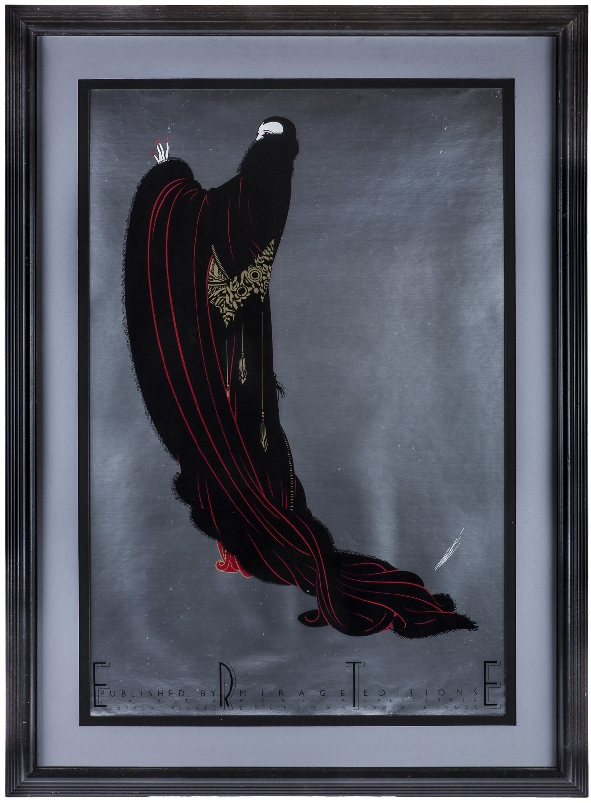 Работа оформлена в раму под стеклом. Внизу надпись «Published by Mirage Editions. © 1980. Santa Monica, California. Mirage Editions/ Gold &Cook».