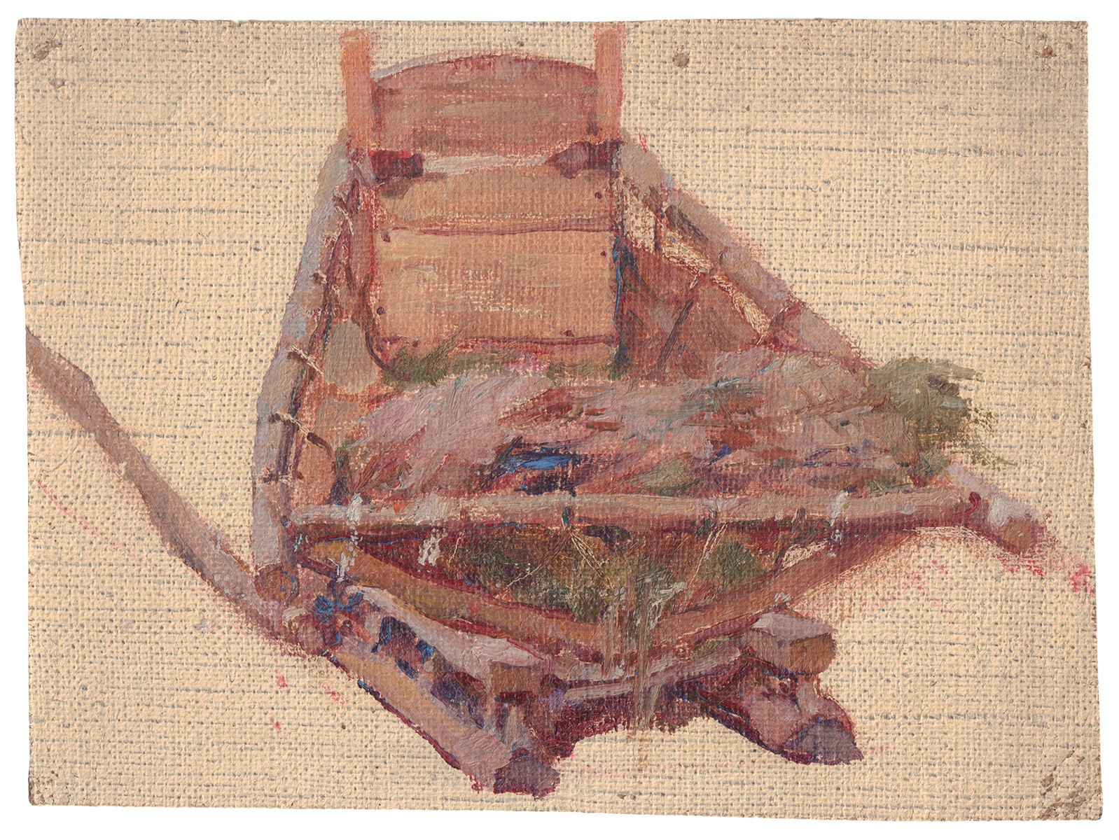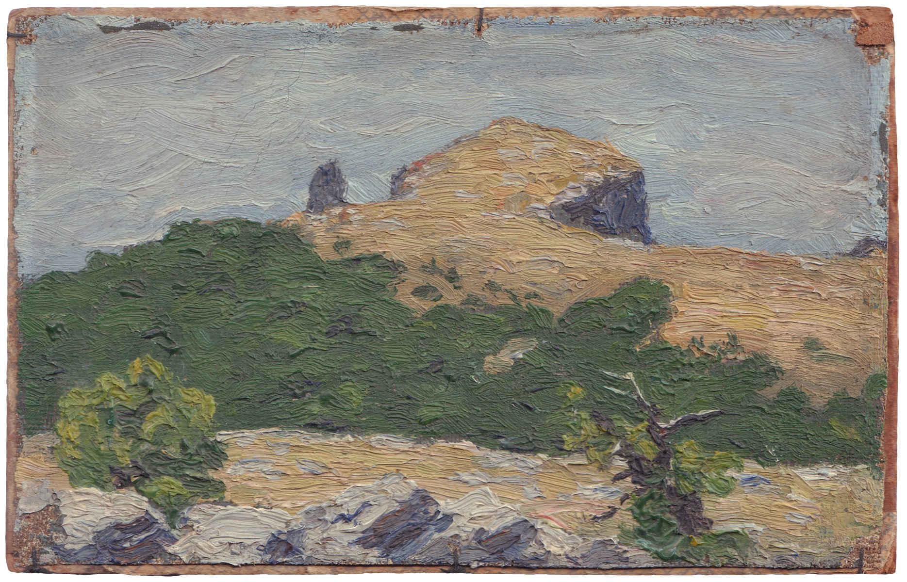 Этюд маслом изображающий кладбище с татарскими надгробиями сюжетно пересекается с картиной с аналогичным сюжетом И.И. Левитана.