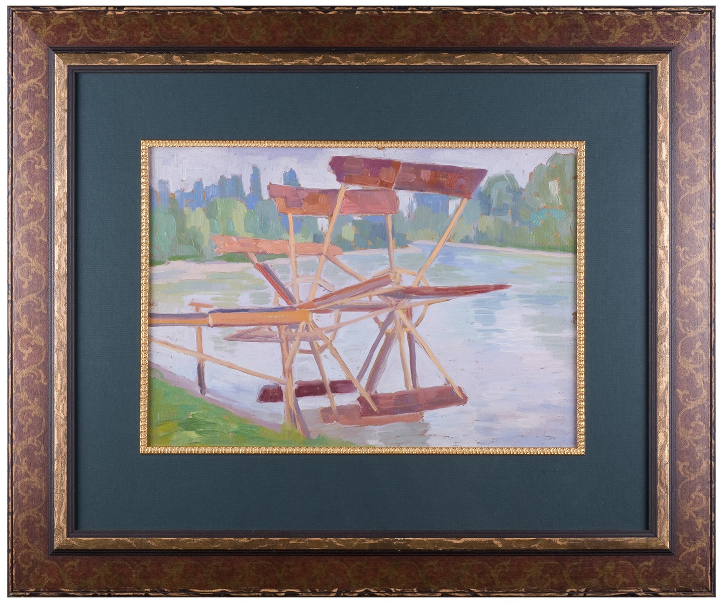В раме, под стеклом.