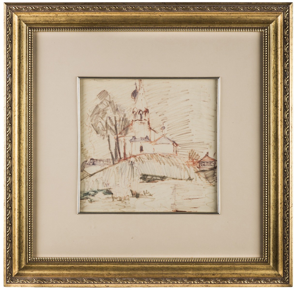 В раме, под стеклом.