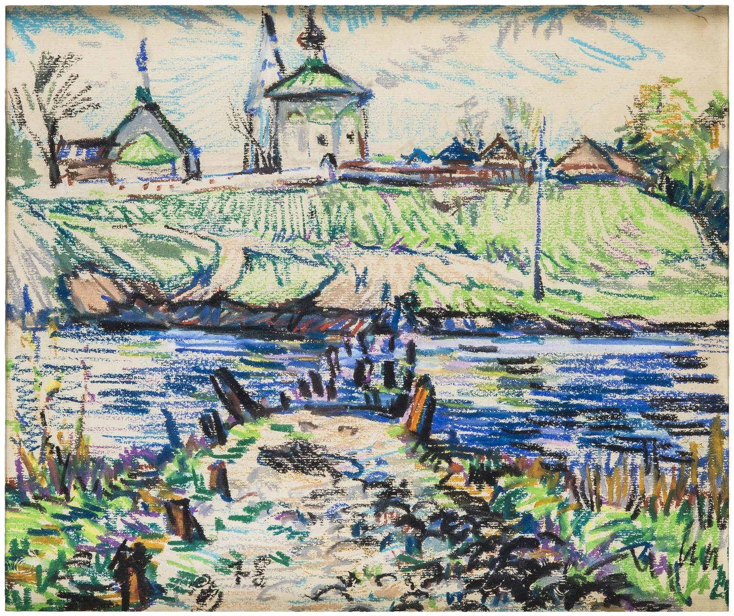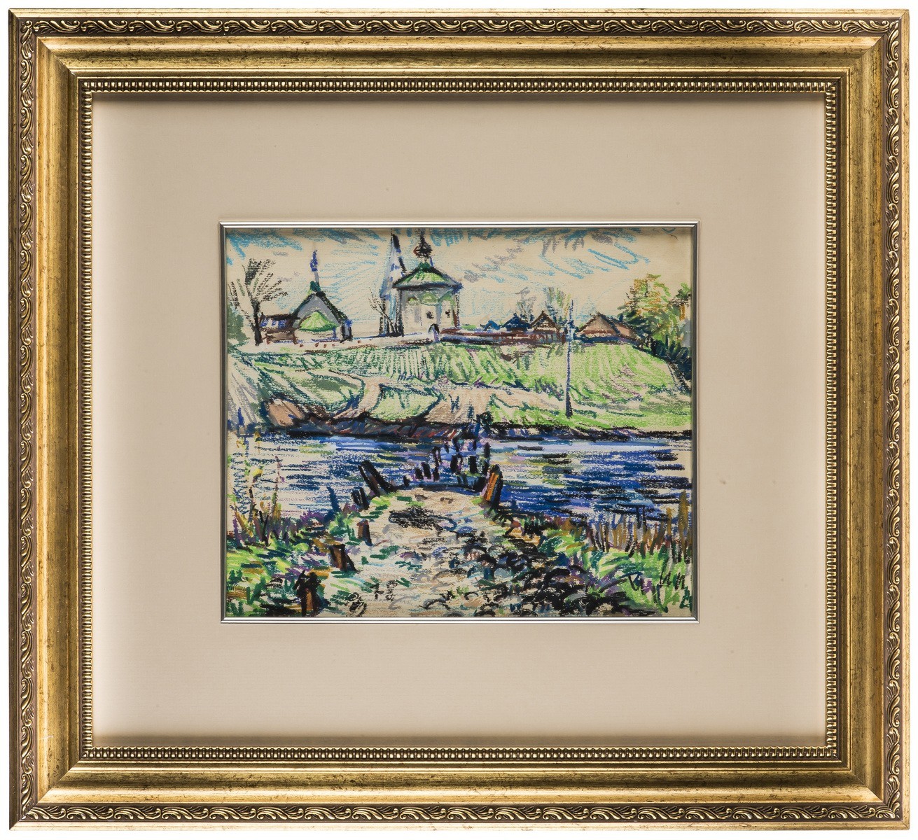 В раме, под стеклом. Авторские инициалы в нижней части картины.