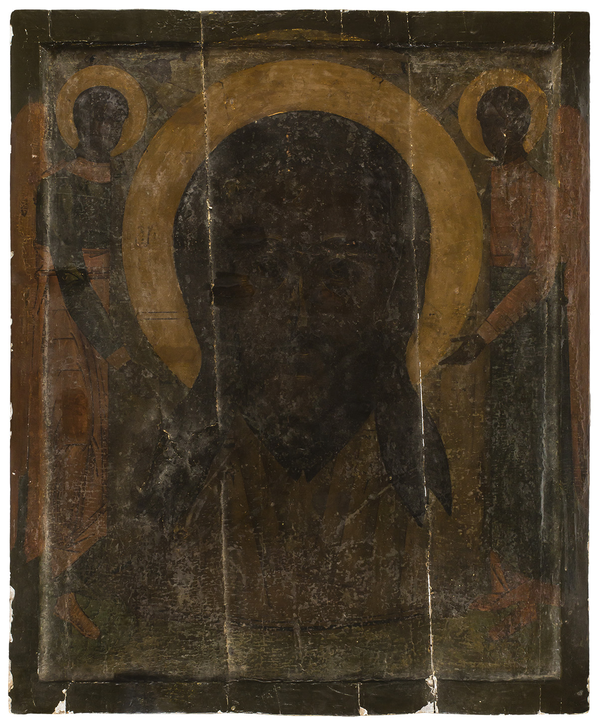 Дерево, темпера, левкас. Шпонки сквозные. В верхней части композиции представлены два ангела, поддерживающие убрус с образом Спаса Нерукотворного.