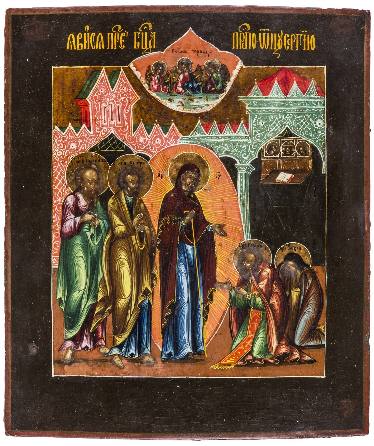 Икона "Явление Богоматери преподобному Сергию Радонежскому". - Москва, середина XIX века. - 31х26х2 см.