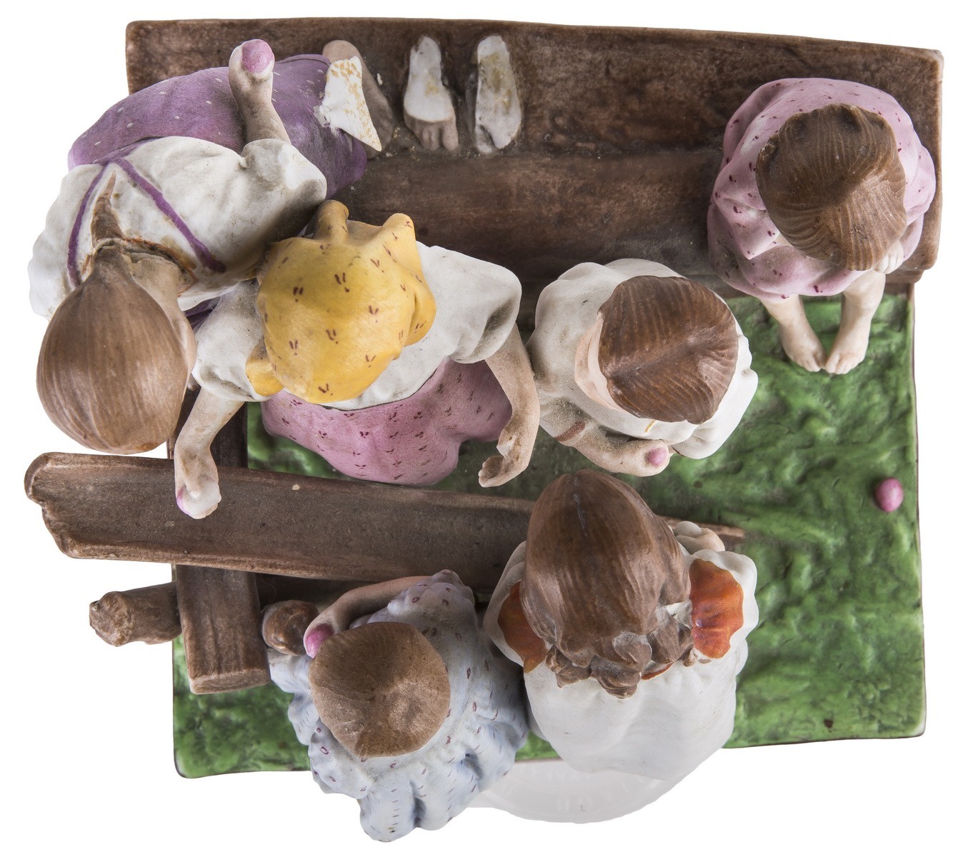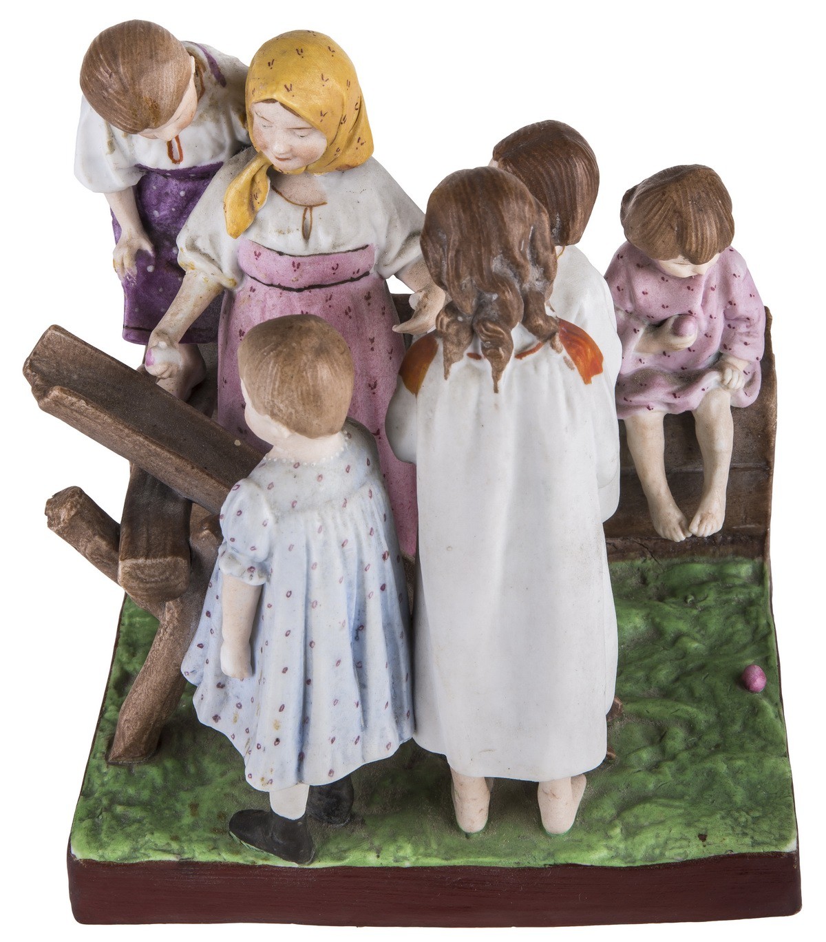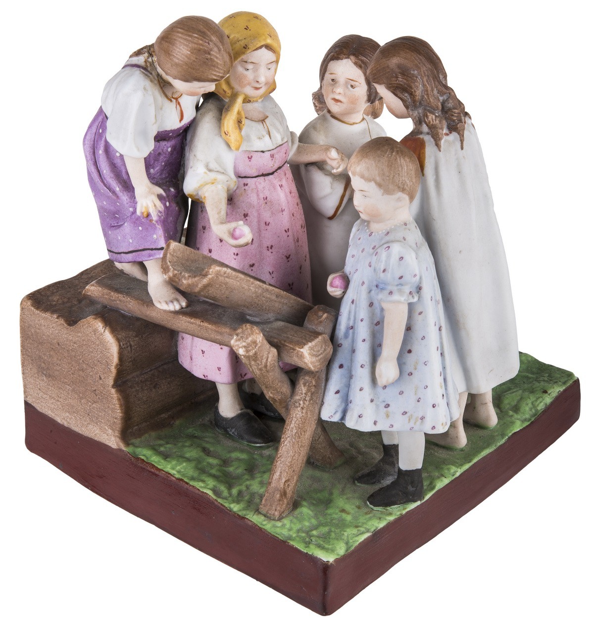Бисквит, полихромная роспись. Марки: красным на бисквите «Гарднер», метка в тесте «Гарднер», «Георгий Победоносец», метка в тесте «5».