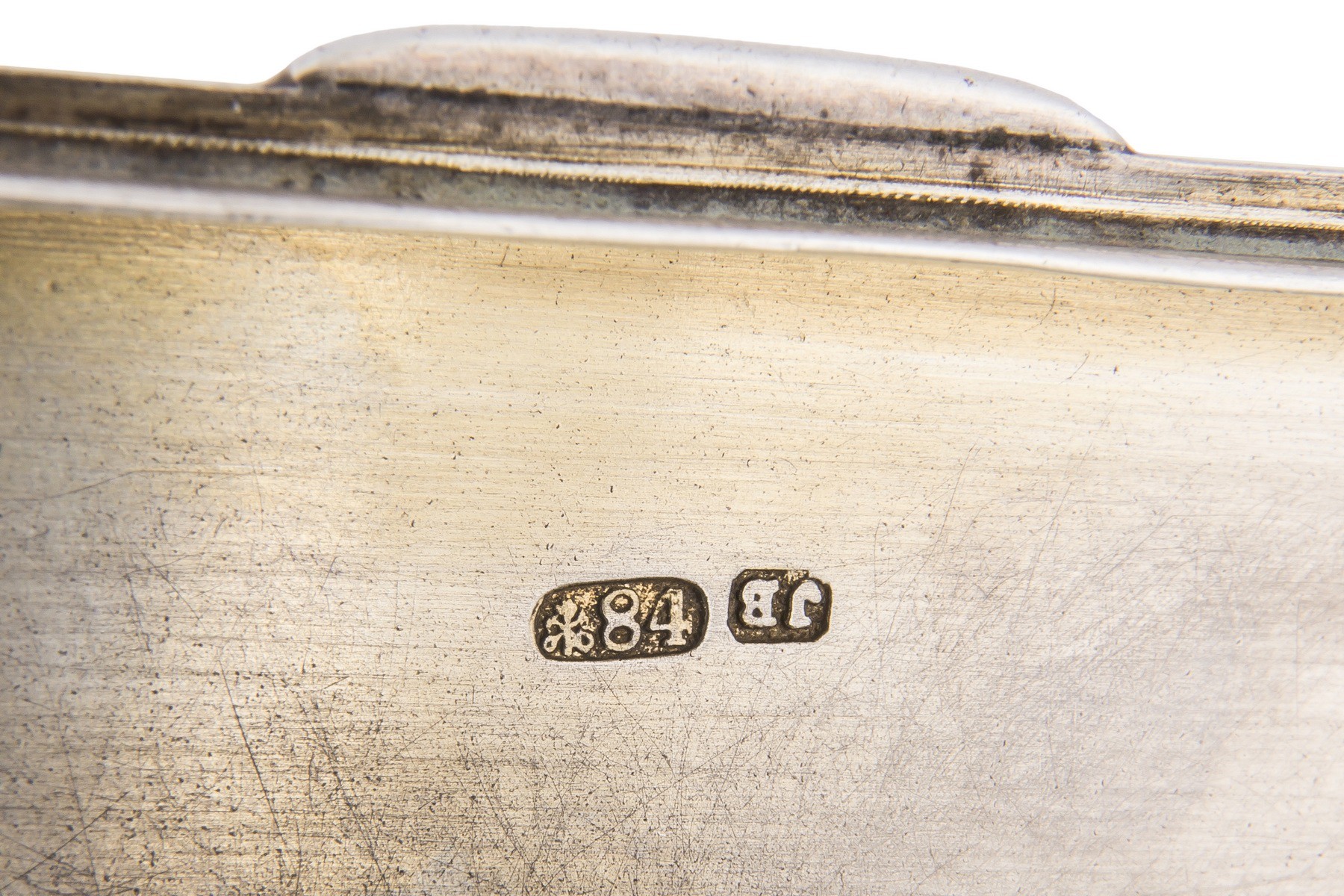 Серебро, чеканка, гравировка, золочение. На дне гравирована дарственная надпись: "И.В. Мушкетову / Князь Николай / 17-го Ноября 1880 г.". Клейма: "два якоря и скипетр" с цифрой "84" - городое клеймо Санкт-Петербурга с пробой; "JB" - Херц Иоганн Бернхард (?).