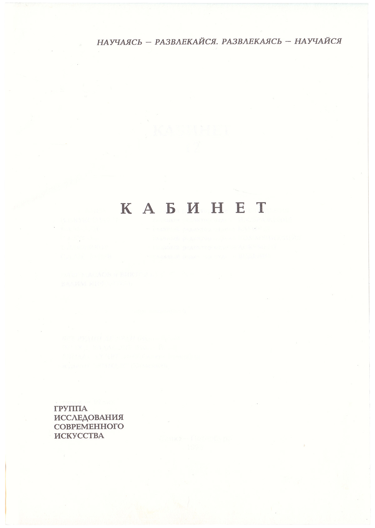 «Кабинет» — Петербургский междисциплинарный журнал о современном визуальном искусстве и науке. Журнал основан Олесей Туркиной, Иреной Куксенайте, Тимуром Новиковым, Сергеем Бугаевым и Виктором Мазиным в 1991 году для осмысления феномена современного искусства в контексте новых исторических условий «Перестройки», «Глобализации» и «Постсовременности». C 1991 по 1997 год вышло 12 номеров тиражом 99 экземпляров. Журнал издавался на средства редакции и друзей, экземпляры раздавались бесплатно.