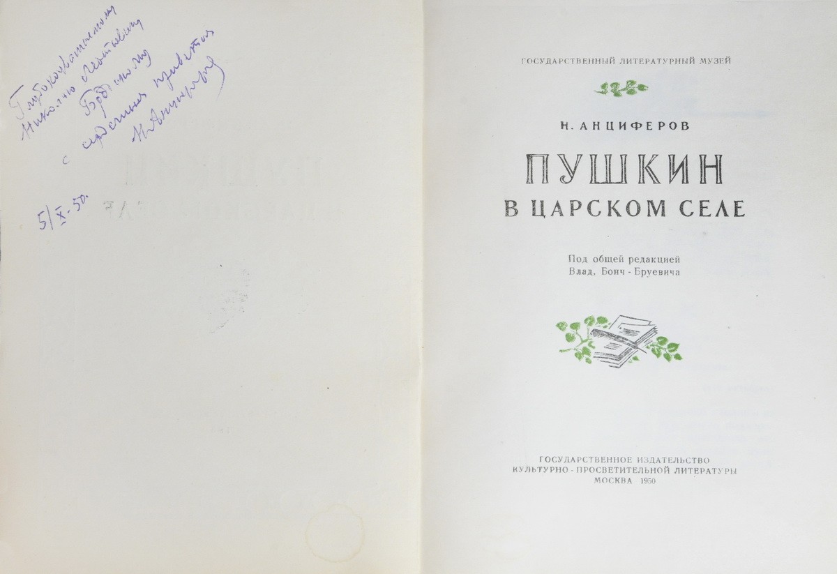 В иллюстрированной издательской обложке. Дарственная надпись автора Н.Л. Бродскому на 2 с. обложки: «Глубокоуважаемому / Николаю Леонтьевичу / Бродскому / с сердечным приветом / Н. Анциферов / 5/X 50».
